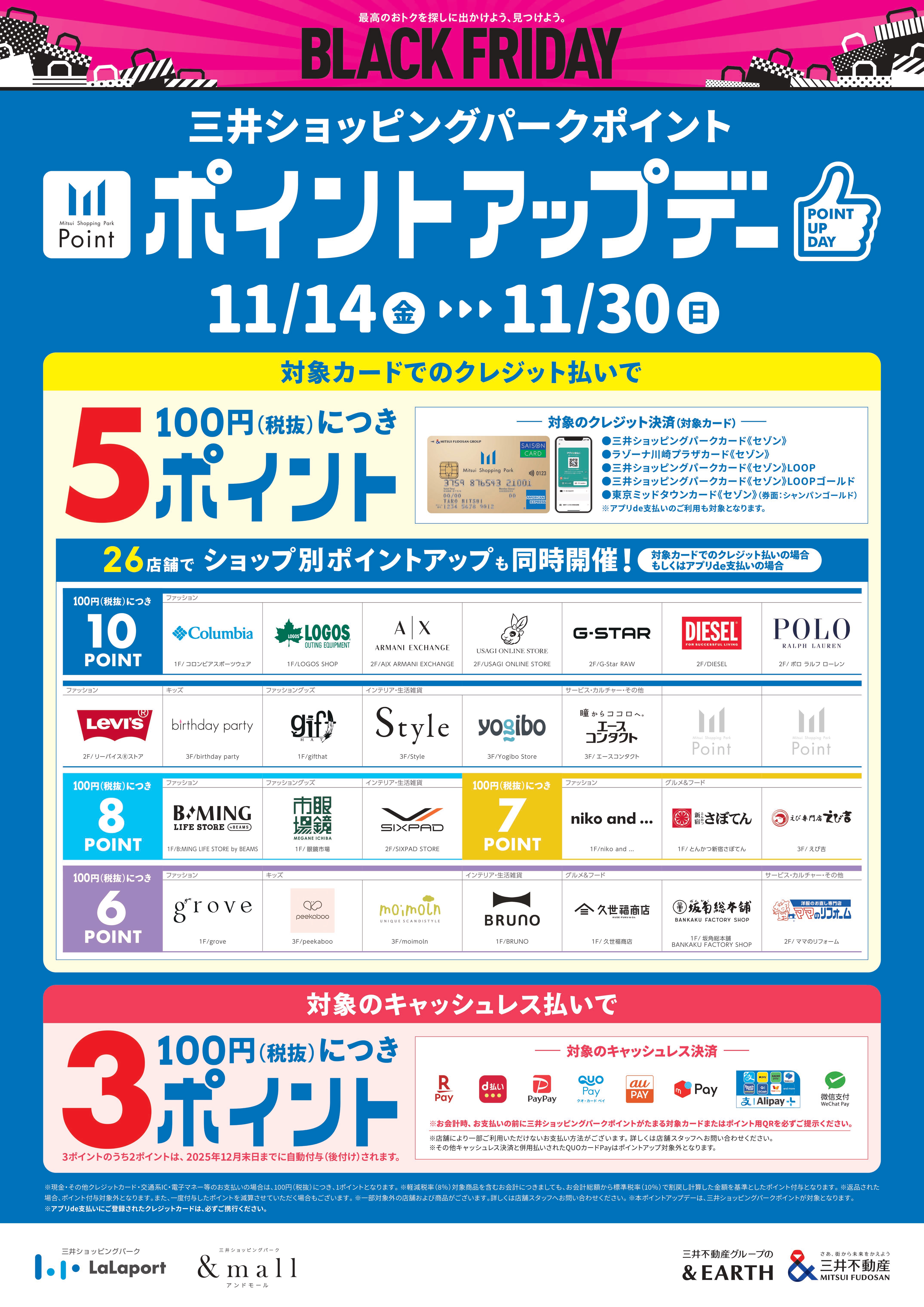 【2025年11月14日(金)~30日(日)】三井ショッピングパーク BLACK FRIDAYポイントアップキャンペーン開催!