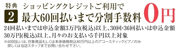 【ピアノフェスタ期間中限定!】最大60回まで分割手数料が0円!