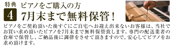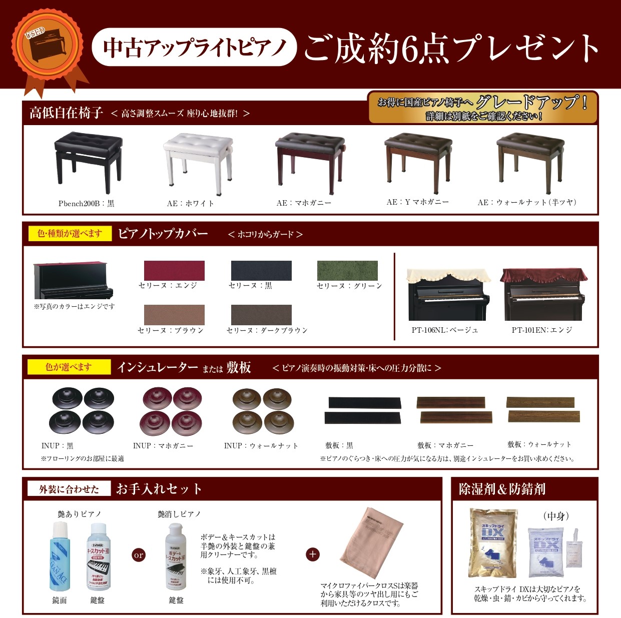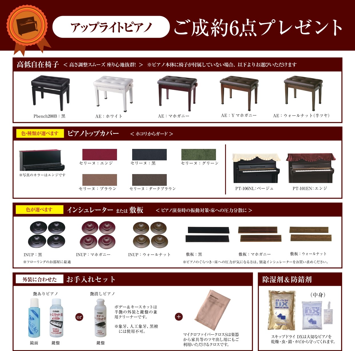 上記の他に、アップライトピアノ・グランドピアノをご成約のお客様にはお持ちになるのにあたって必要な以下のアイテムをプレゼント致します。