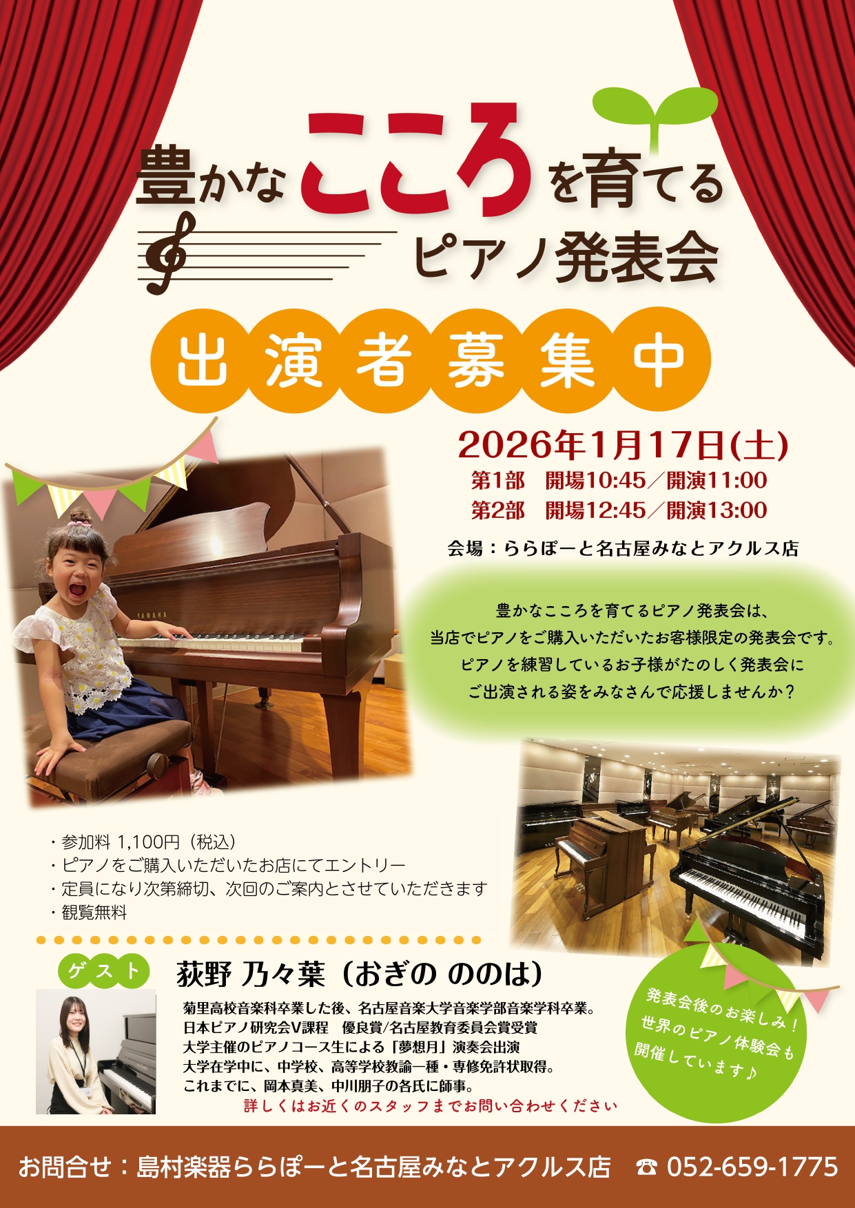 コンサートは、ららぽーと名古屋みなとアクルス店のスタインウェイルームで開催しました!