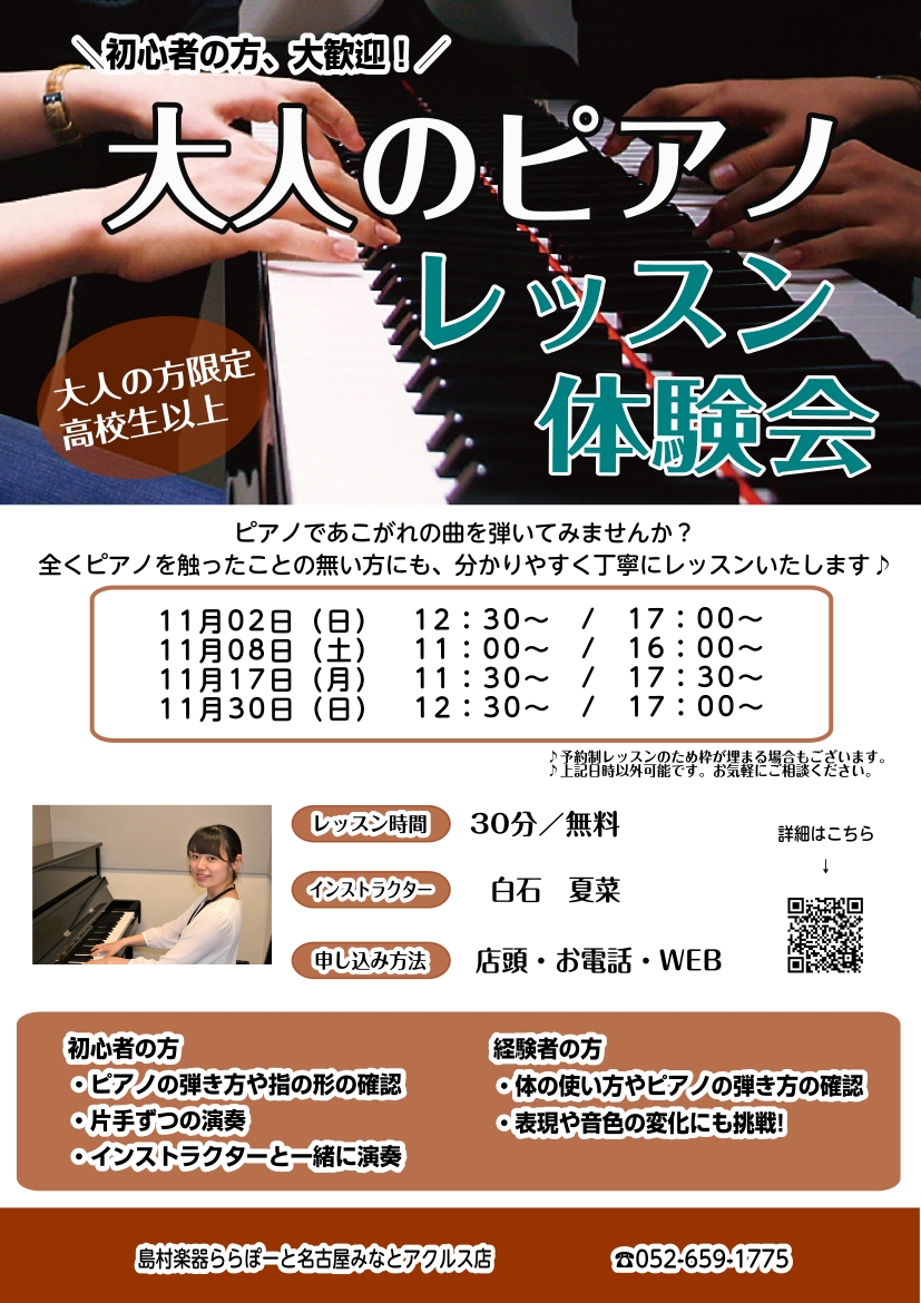 始めるならこの秋がチャンス!大人のピアノレッスン体験会【名古屋市港区・南区・熱田区・中川区/ピアノ教室】