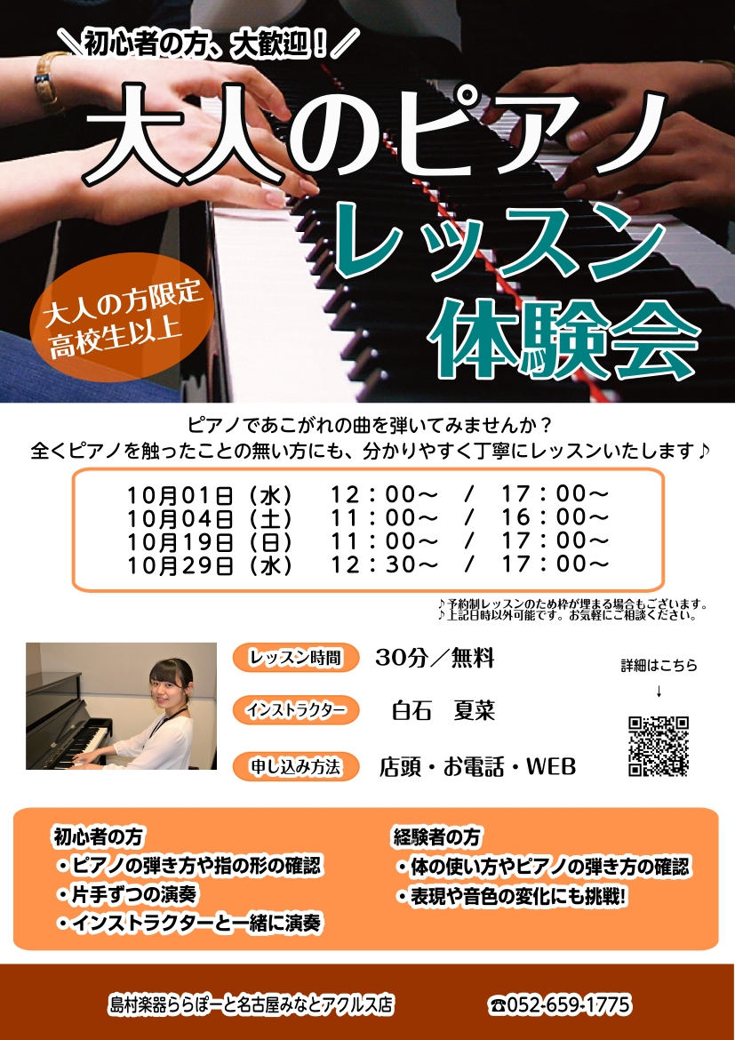 この秋から!新しい趣味、始めてみませんか?大人のピアノレッスン体験会【名古屋市港区・南区・熱田区・中川区/ピアノ教室】