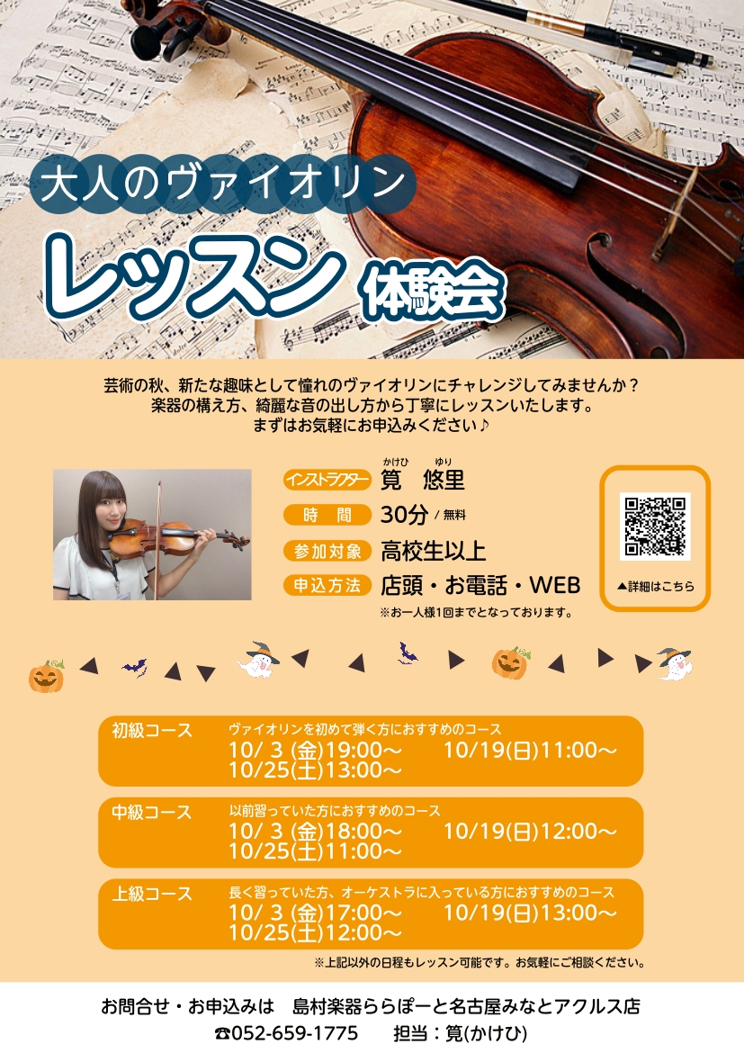 ![CONTENTS憧れのバイオリン、始めませんか?体験会の日程のご案内オンラインレッスンも可!お申込みはこちらインストラクタープロフィールお問い合わせ憧れのバイオリン、始めませんか? 皆様こんにちは。バイオリンインストラクターの筧です。新たな挑戦として、憧れのバイオリンを始めてみませんか?30分のバイ […]](https://www.shimamura.co.jp/shop/nagoya-aquls/wp-content/uploads/sites/186/2023/01/20230127-ae6177ab-29b8-4165-97a7-bafe64ac666b.jpeg)