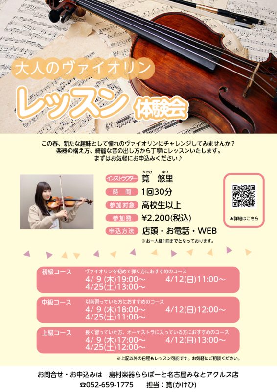 30分のバイオリン体験会を開催しますので、ぜひお気軽にご参加ください!