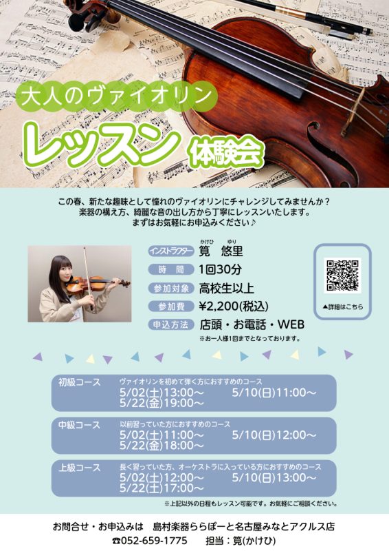 30分のバイオリン体験会を開催しますので、ぜひお気軽にご参加ください!