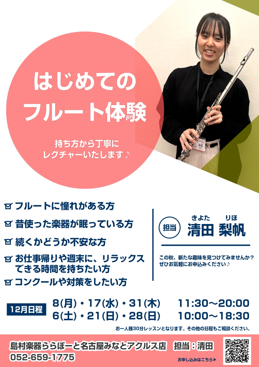 初めての方もお気軽にご参加いただけるフルート体験会です!