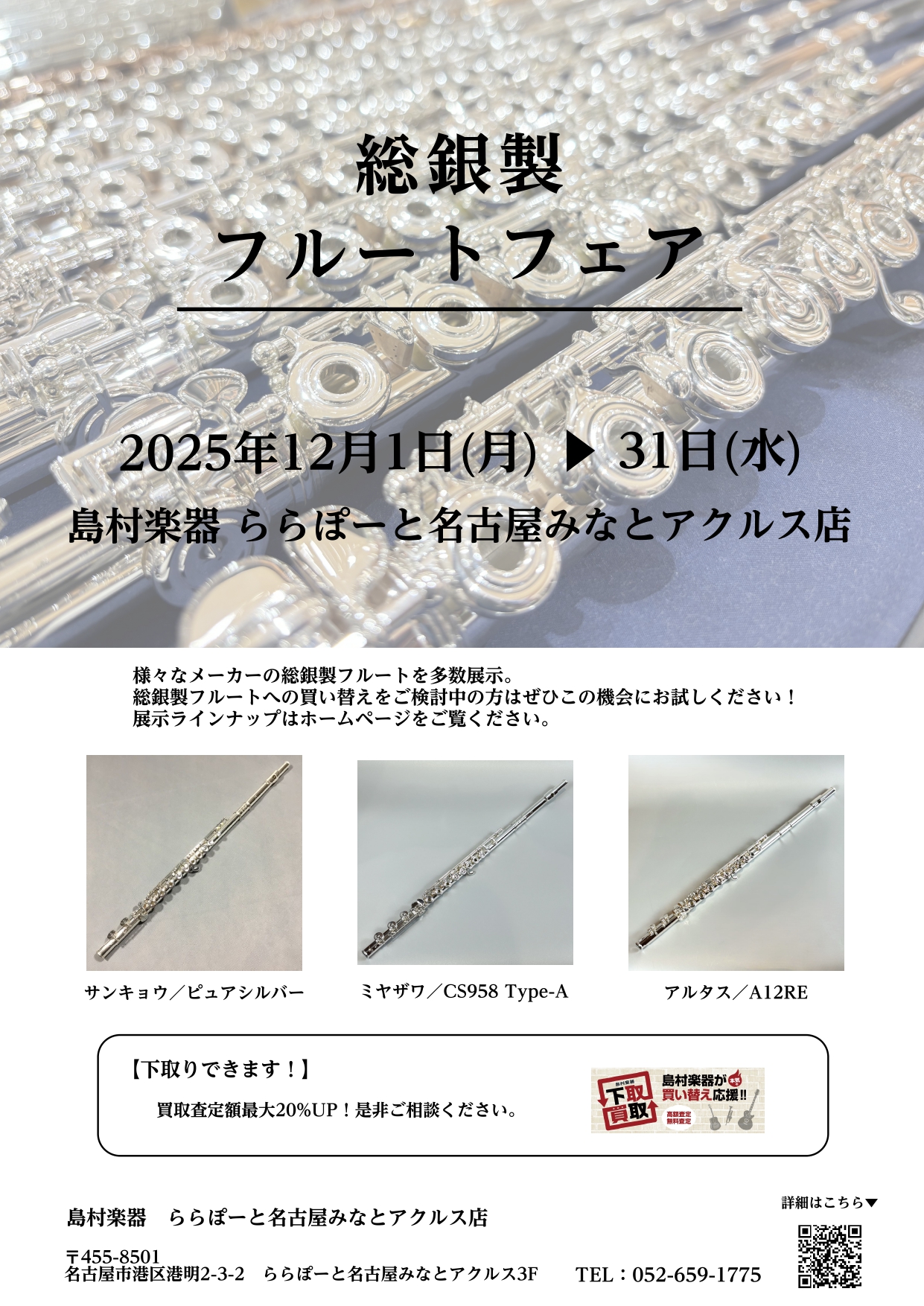 ![CONTENTS総銀製フルートフェア開催!展示ラインナップご予約・お問い合わせ総銀製フルートフェア開催! 様々なメーカーの総銀製フルートを多数展示。総銀製フルートへの買い替えをご検討中の方はぜひこの機会にお試しください! 展示ラインナップ ヤマハ パール アルタス サンキョウ ミヤザワ ご予約・お問 […]](https://www.shimamura.co.jp/shop/nagoya-aquls/wp-content/uploads/sites/186/2025/12/20251201-img_2176.jpg)