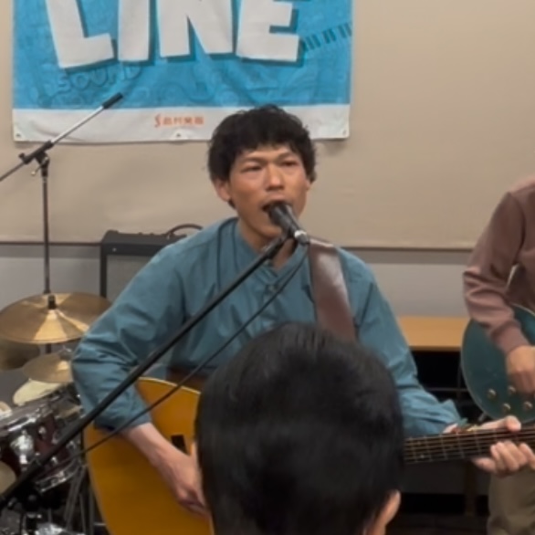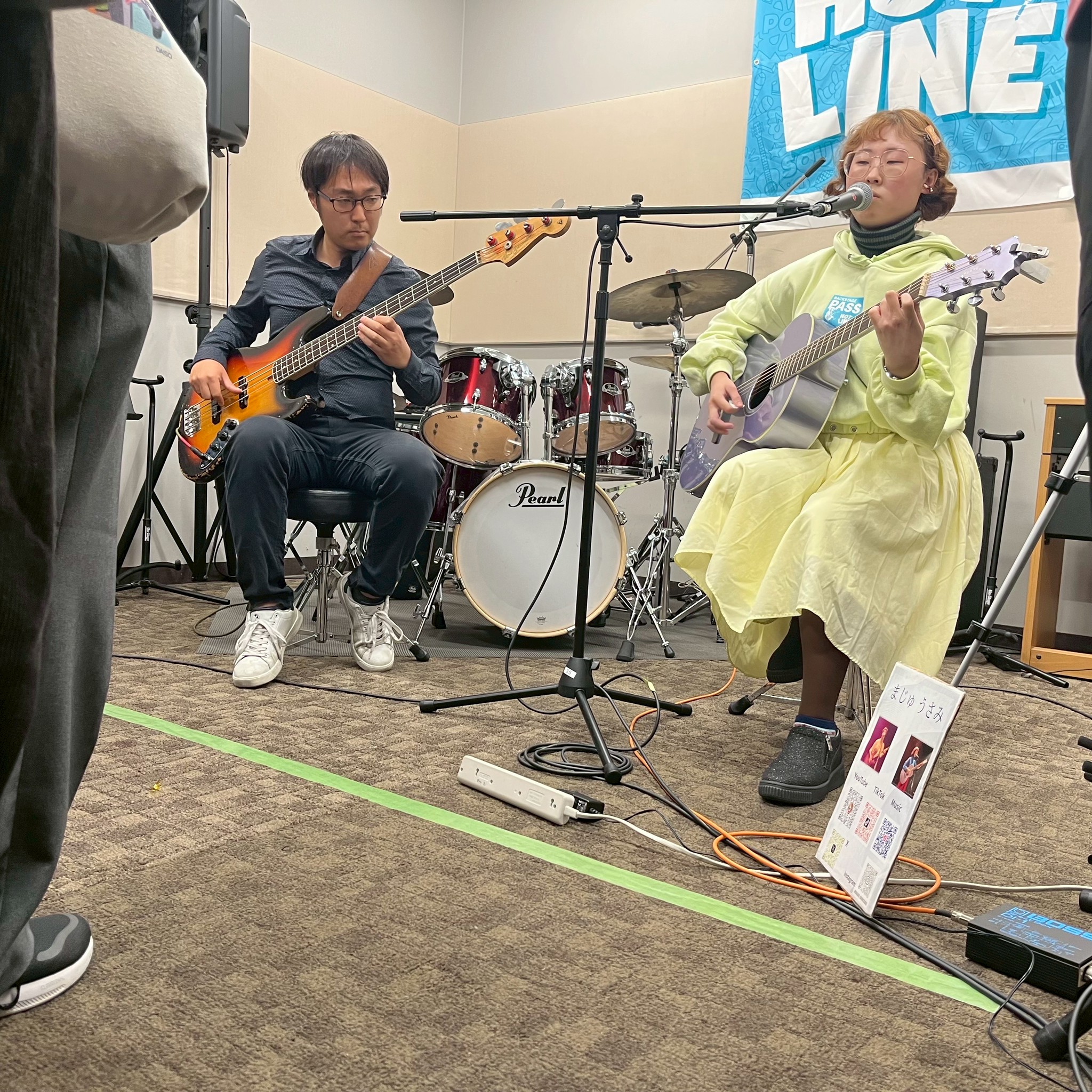 2組目に登場してくださったのは「いもけんぴ」さまです。披露された楽曲はすべてオリジナル曲で、どれも優しく温かみのある曲調が印象的でした。穏やかな歌声が会場に心地よく響き、自然と聴き入ってしまう素敵なステージとなりました。リラックスした雰囲気の中で、音楽の魅力をじっくり味わえる、癒やしの時間を届けてくださいました。