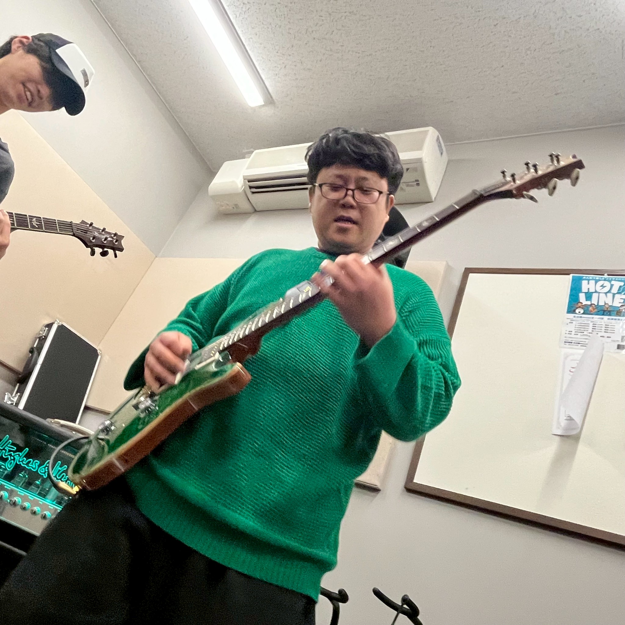 7組目は「成金ゴブリン」さまです。アンプやエフェクター、ギター、ベースに至るまで高価な機材を揃えており、それがバンド名の由来だとか、そうでないとか……と笑いを誘われてしまいました。演奏曲の中には私の好きなバンドのコピーもあり、思わずお客様と一緒になって盛り上がってしまう、楽しく印象的なステージでした。