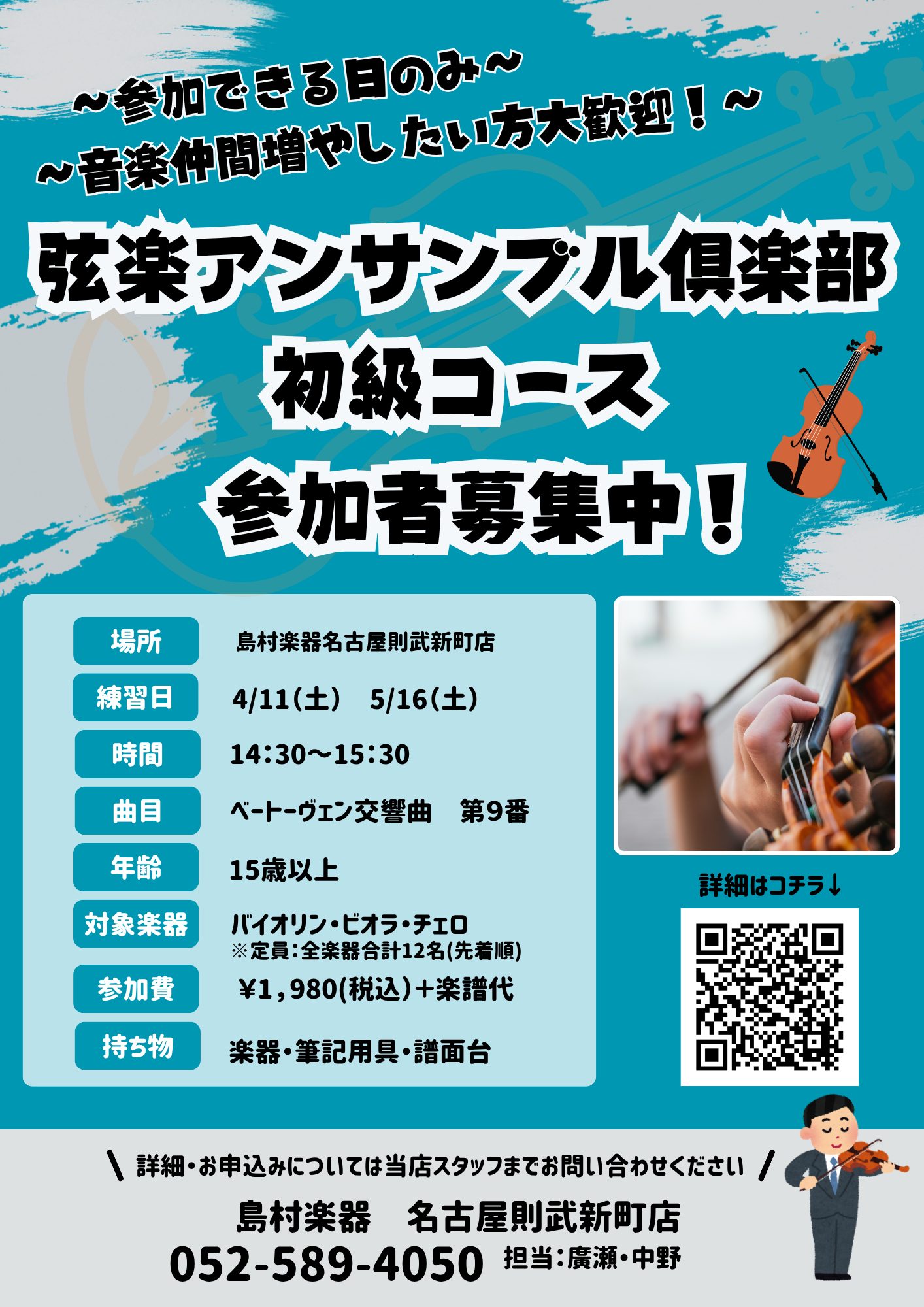 ブランクあり・経験者OK!弦楽器クラブ🎻 皆で楽しむ!大人の弦楽器アンサンブル倶楽部 初級コース。バイオリン、ヴィオラ、チェロを使って、ブランクあり、経験者の方でもアンサンブルを楽しめます!※今回は15歳以上の大人向けイベントとさせていただきます。 CONTENTSみんなで楽しくアンサンブルしましょ […]
