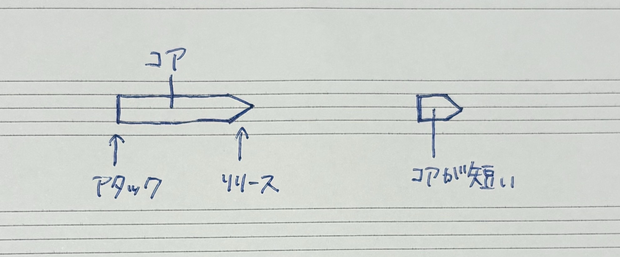 もちろん伸ばす間に考えることは「アタック」「コア」「リリース」です。