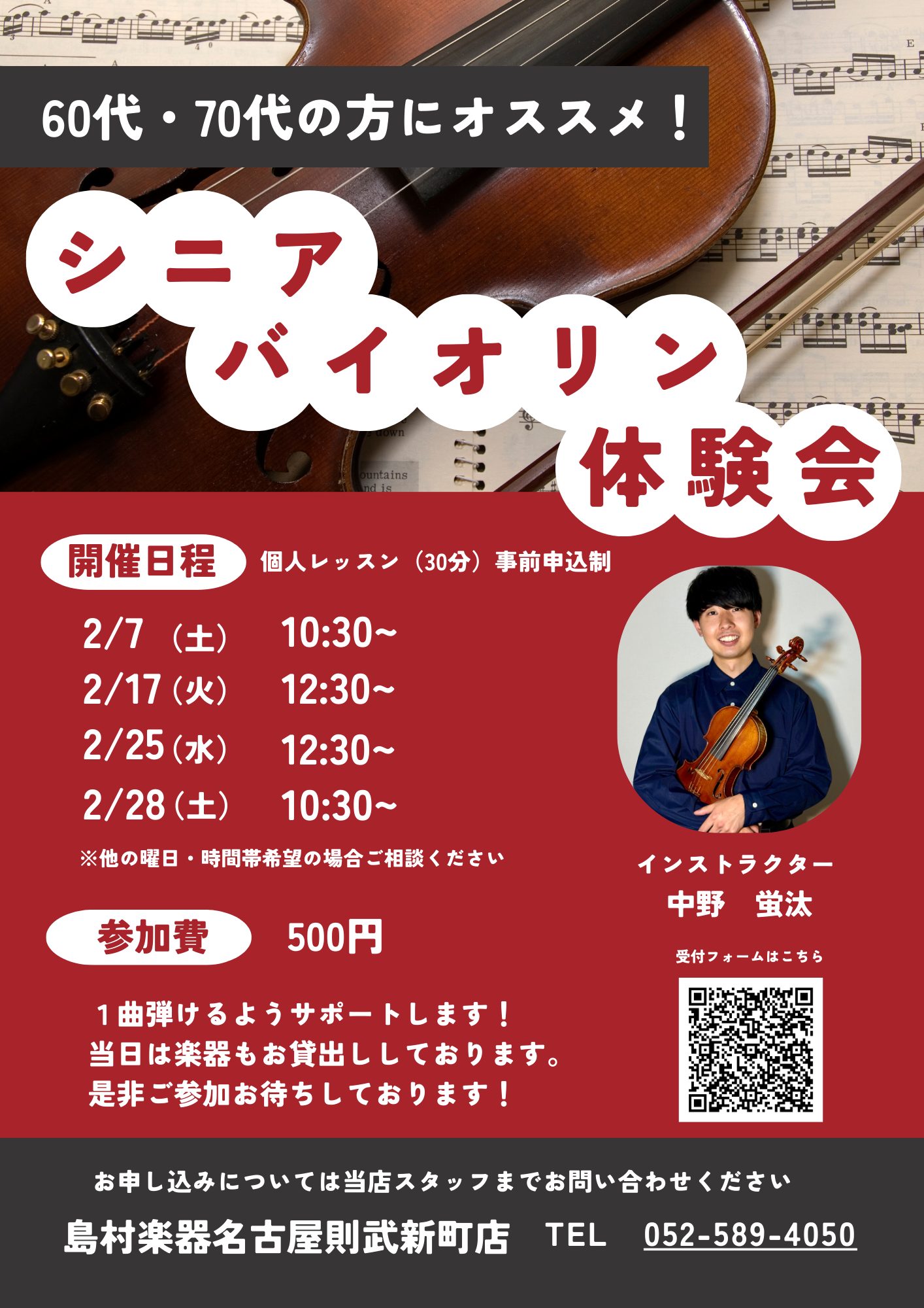![CONTENTSシニアバイオリン体験会開催日程・受講料インストラクター紹介ビオラレッスンも可能です大人のための予約制バイオリン教室も開講中!開催中のイベントお問い合わせシニアバイオリン体験会 「いつかバイオリンを弾いてみたい」そんな憧れを抱きながら、大人になった今、「もう年だから…」「楽器なんて触っ […]](https://www.shimamura.co.jp/shop/nagoya-noritake/wp-content/uploads/sites/202/2025/12/20251222-3d6e340eadaed8562e9a4460423e6e74.jpg)