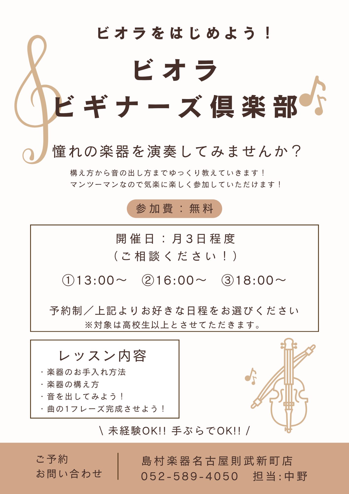 ![「ビオラや弦楽器って難しそう…」「音を出すのが大変って聞くけど…」「そもそもビオラとは。。。」 そんな方にぴったりの、初めての一歩をサポートする体験イベント『ビオラビギナーズ倶楽部』を開催します! CONTENTS『ビギナーズ倶楽部』とは担当者紹介開催日程・内容バイオリンサロンも開講中!ビオラサロン […]](https://www.shimamura.co.jp/shop/nagoya-noritake/wp-content/uploads/sites/202/2026/04/20260405-373329537ad4462dfbd3cb44e6c74859.png)