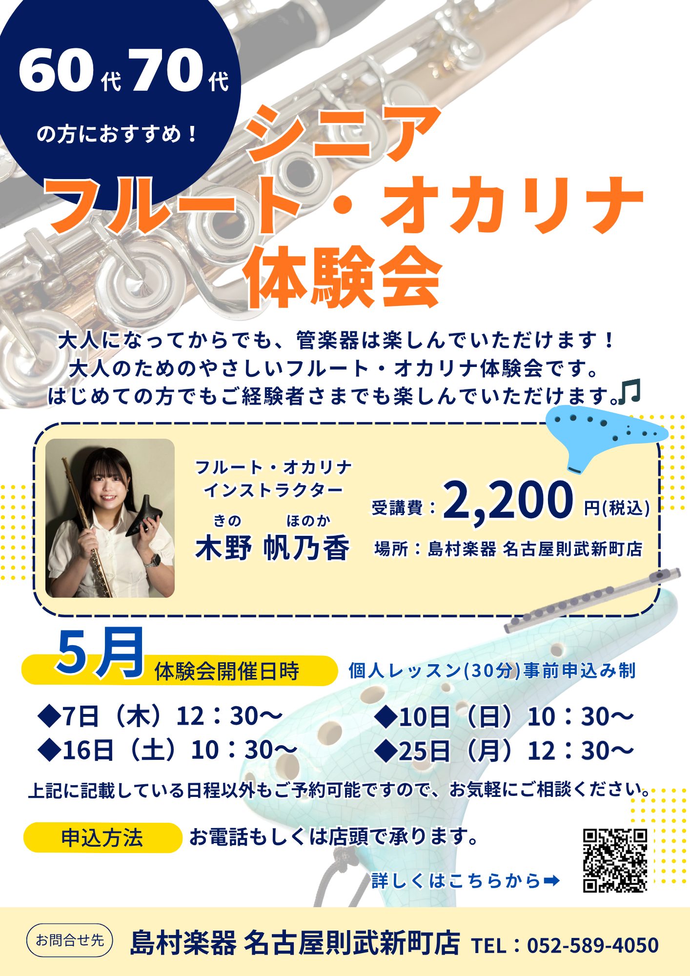 【5月】シニアフルート・オカリナ体験会を開催します!