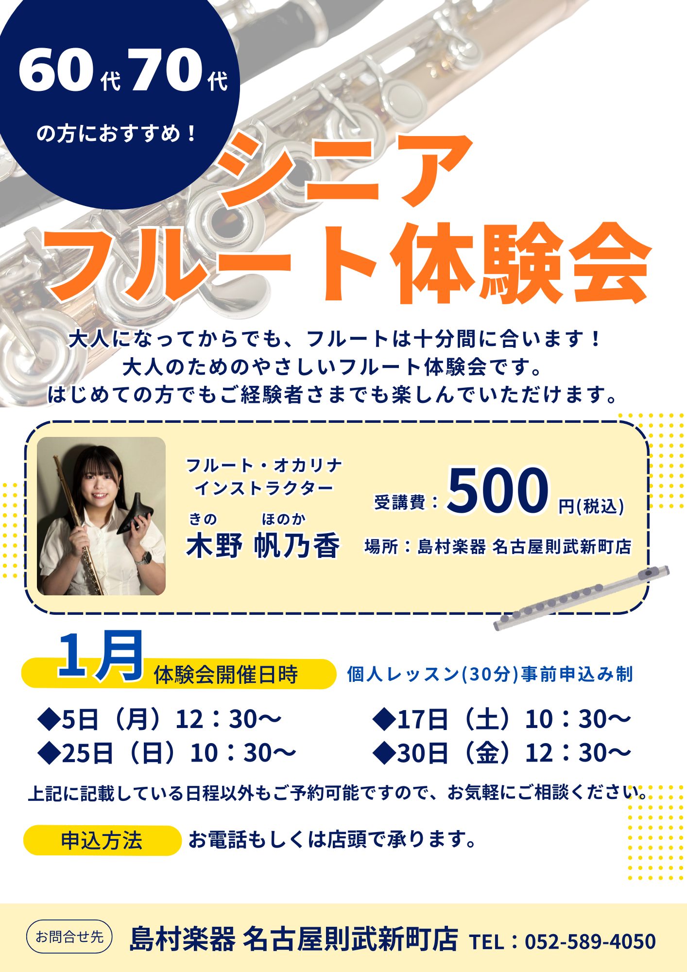 ![皆様こんにちは!島村楽器 名古屋則武新町店フルートインストラクターの木野です。「フルートに憧れていたけれど、今からじゃ遅いかな…」と思った方はいらっしゃいますか?そんな60代・70代の方のための、やさしいフルート体験会です。大人になってからでも、フルートは十分間に合います。60代・70代から“フルー […]](https://www.shimamura.co.jp/shop/nagoya-noritake/wp-content/uploads/sites/202/2025/12/20251218-e92512132610dd098d357f2155bf891a.jpg)