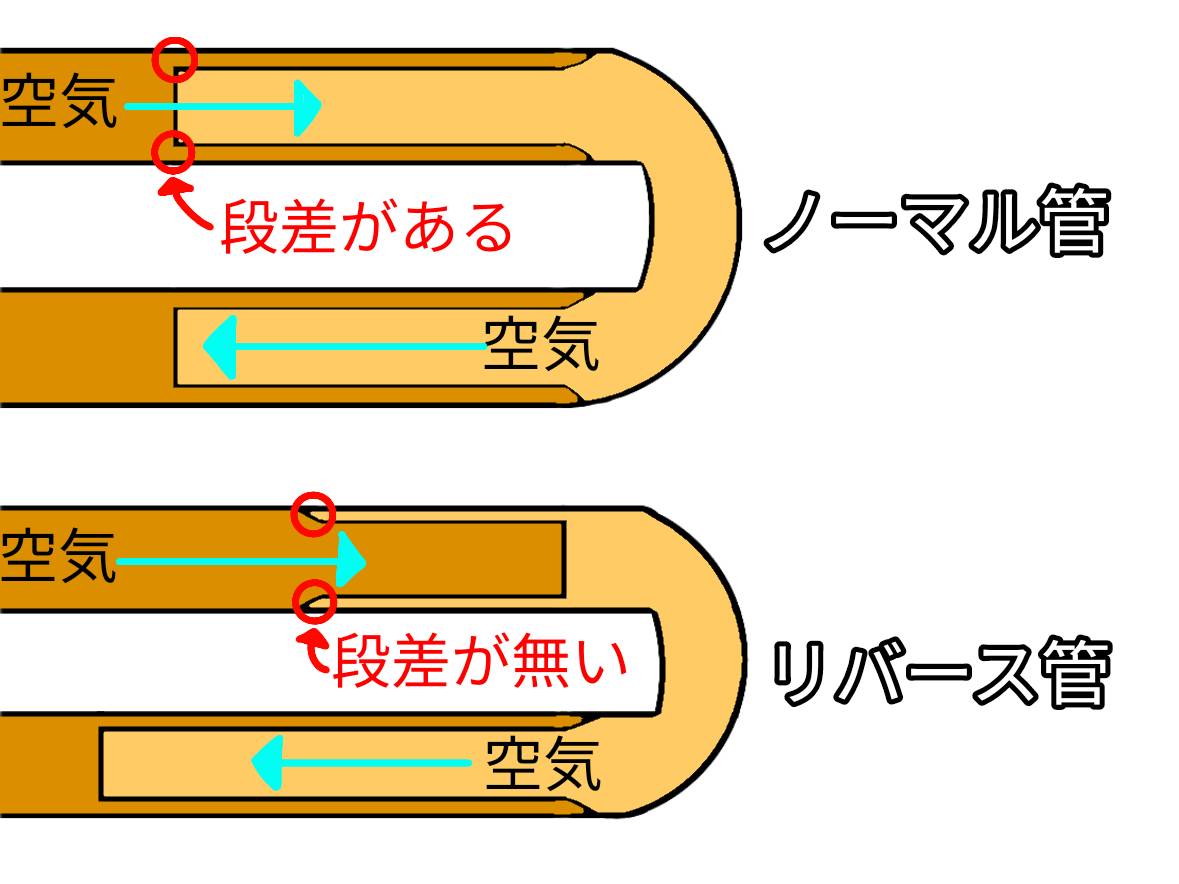 リバース管→管の内部で段差が少なくなる為抵抗感が少なく音に明るさを感じられます。