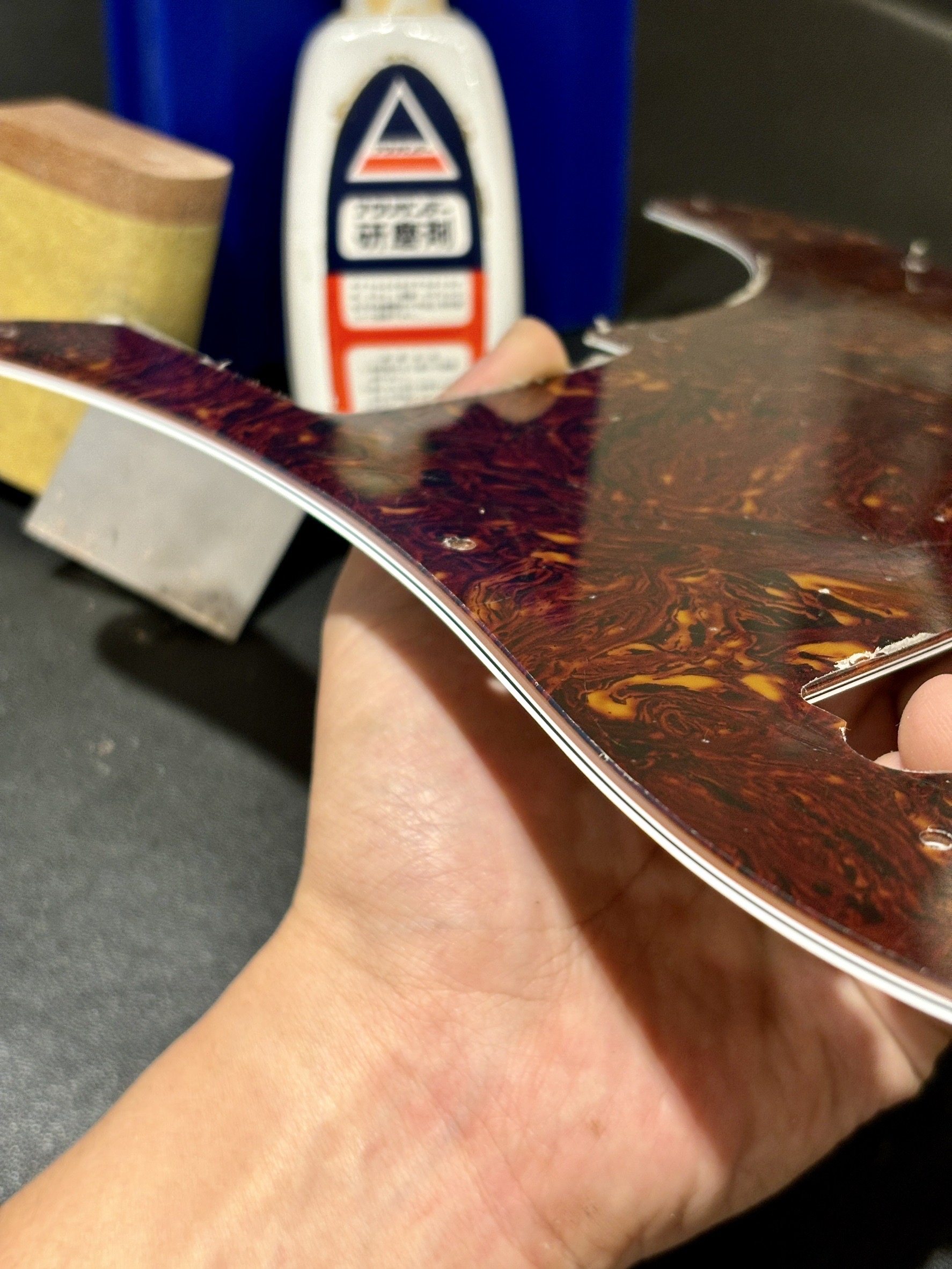 ①ピックガードを1プライホワイトから4プライ茶べっ甲に交換