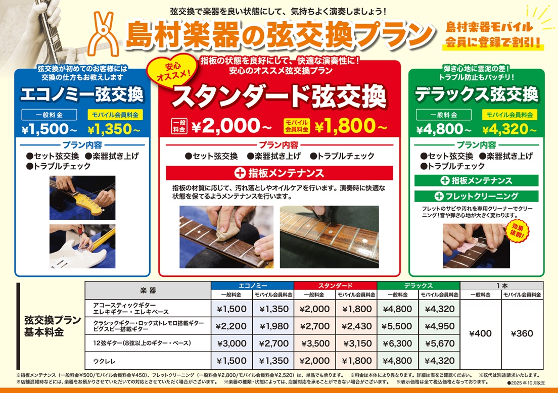 島村楽器モバイルアプリ会員になると、弦交換がずっとお得に!!!