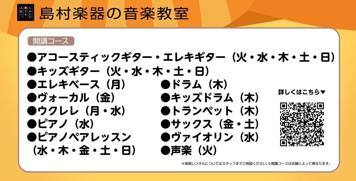 皆様の音楽生活がより良いものになりますよう、講師・スタッフ一同応援いたします!