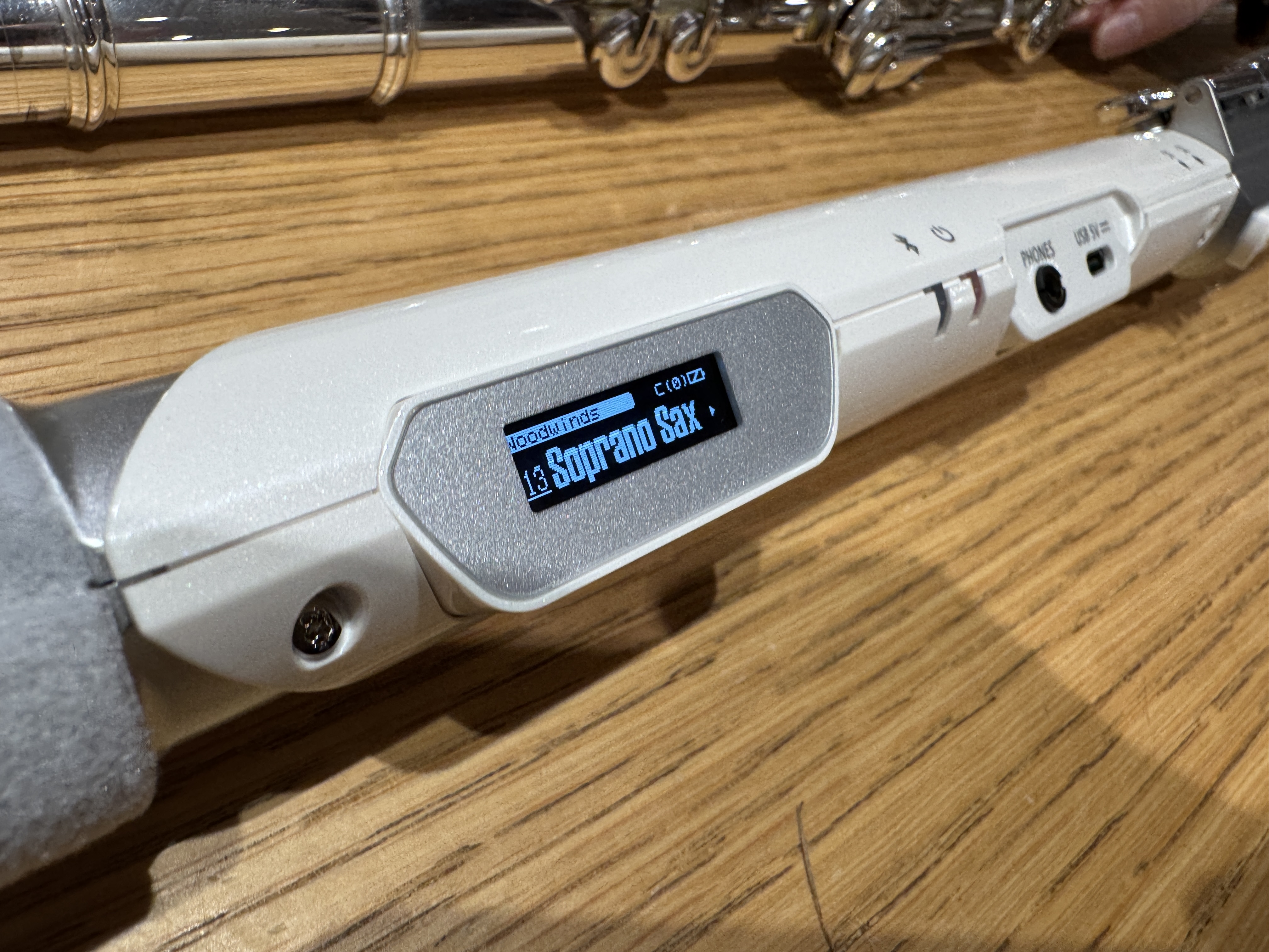 今回のモデルはなんとフルートのデザインやキィレイアウトを採用した“横笛タイプ”の電子管楽器!Brisa=スペイン語で「そよ風」を意味するそうで、これまで電子管楽器=サックス系、いわゆる縦笛タイプが主流でしたが、新たな風が流れ込んできた形となります!
