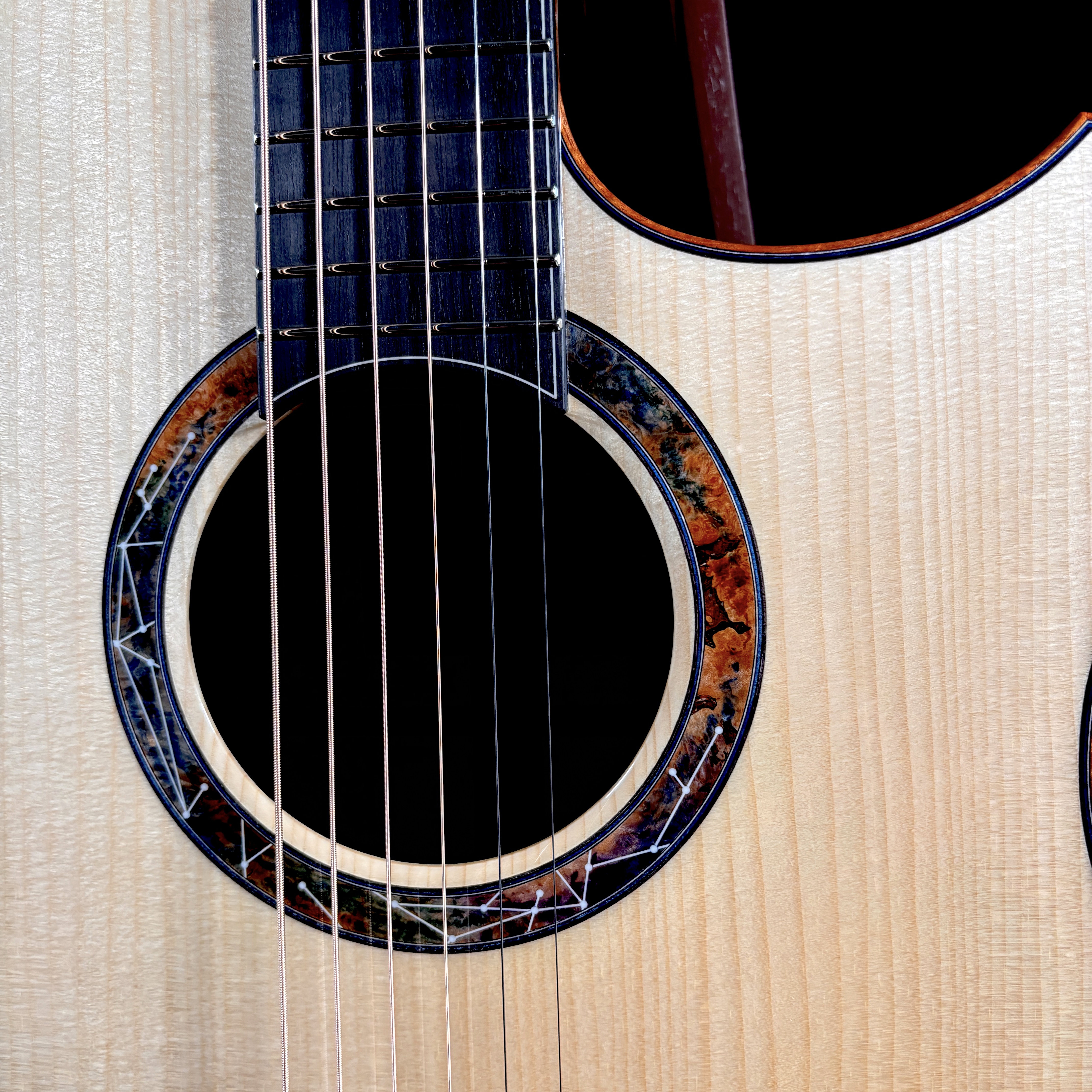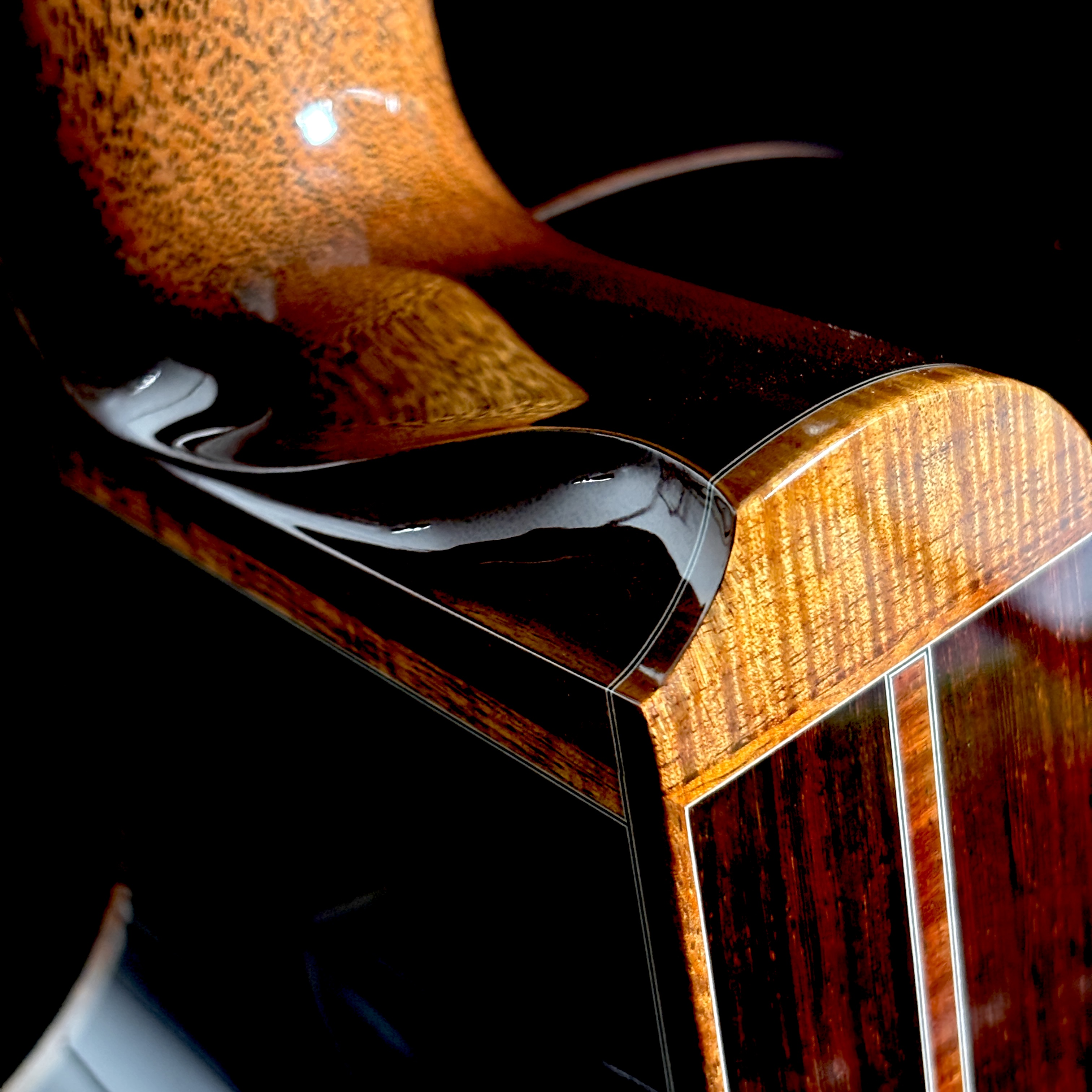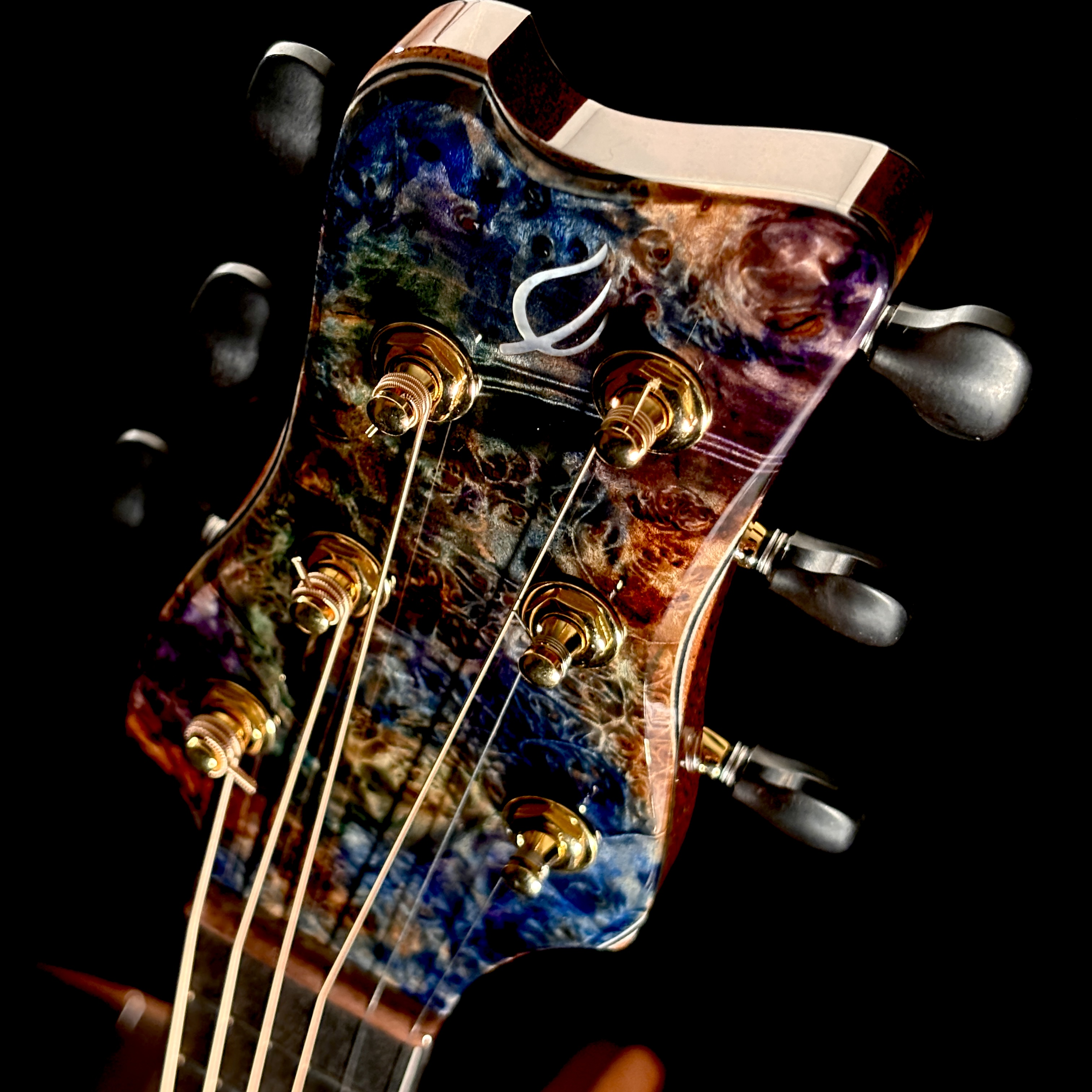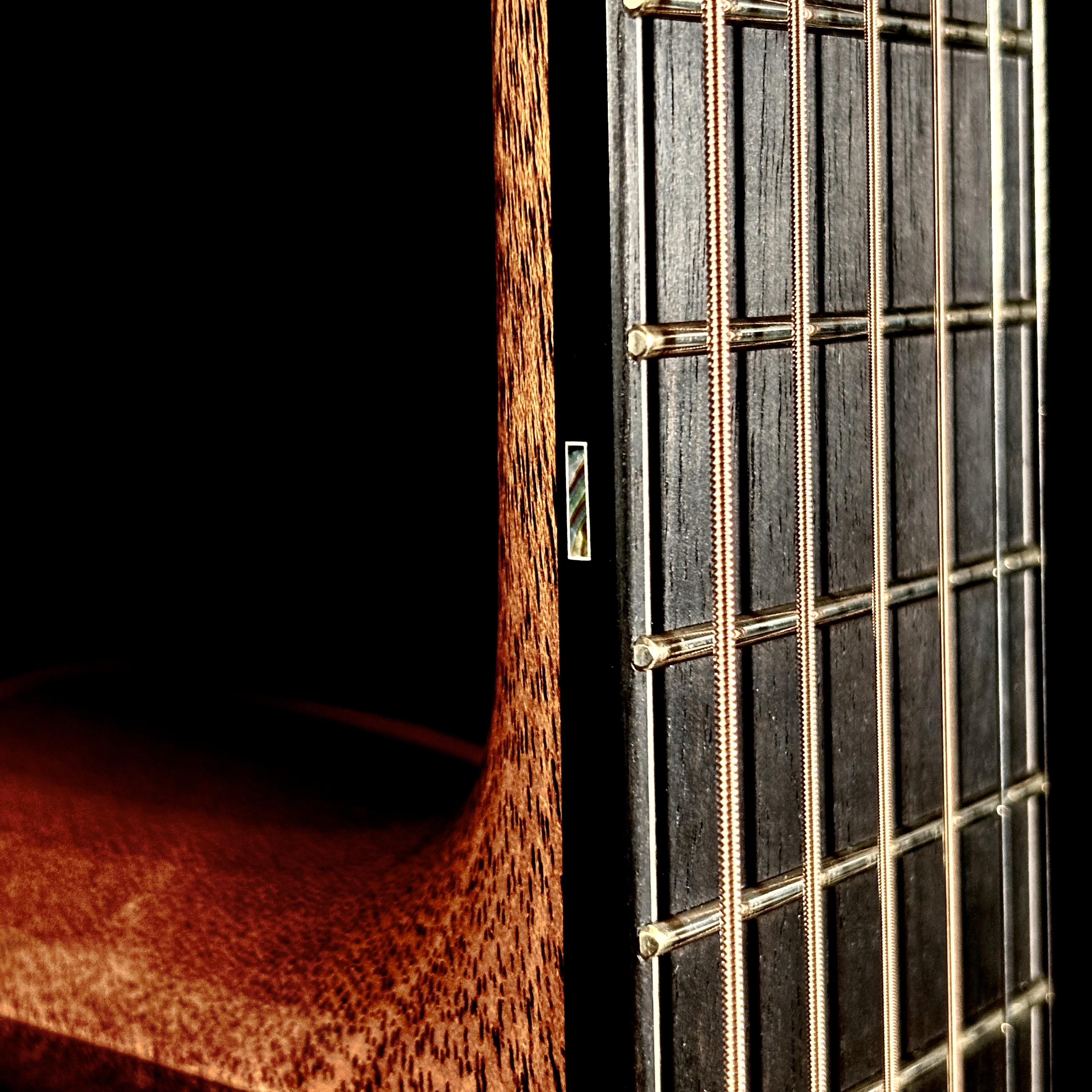 艶やかな外観を彩るのは、多色バールによる芸術的なロゼッタとヘッドプレート。カーリー・ハワイアンコア・バインディングが全体を包み込み、見るたび弾くたびに心を満たすプレミアムな存在感を放ちます。