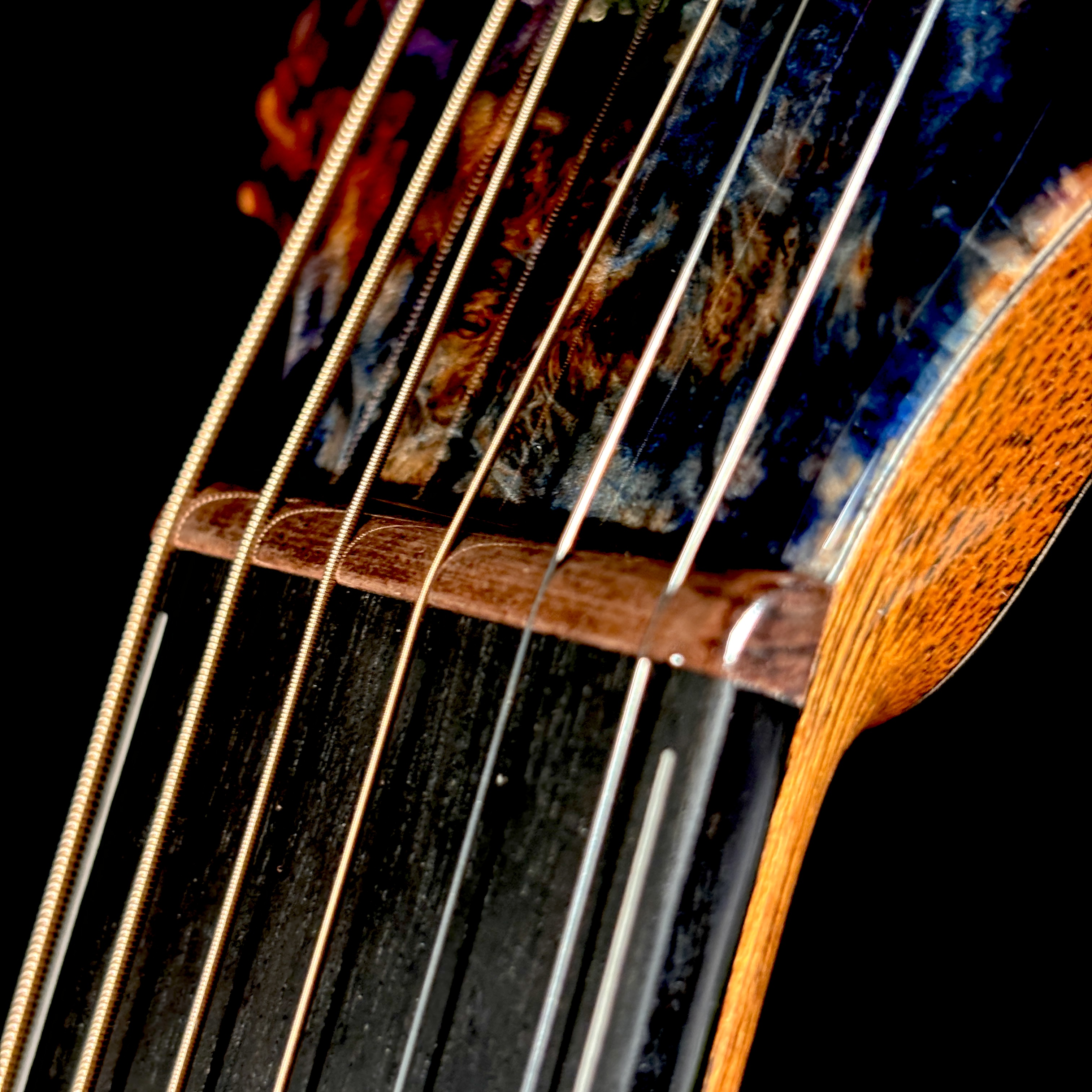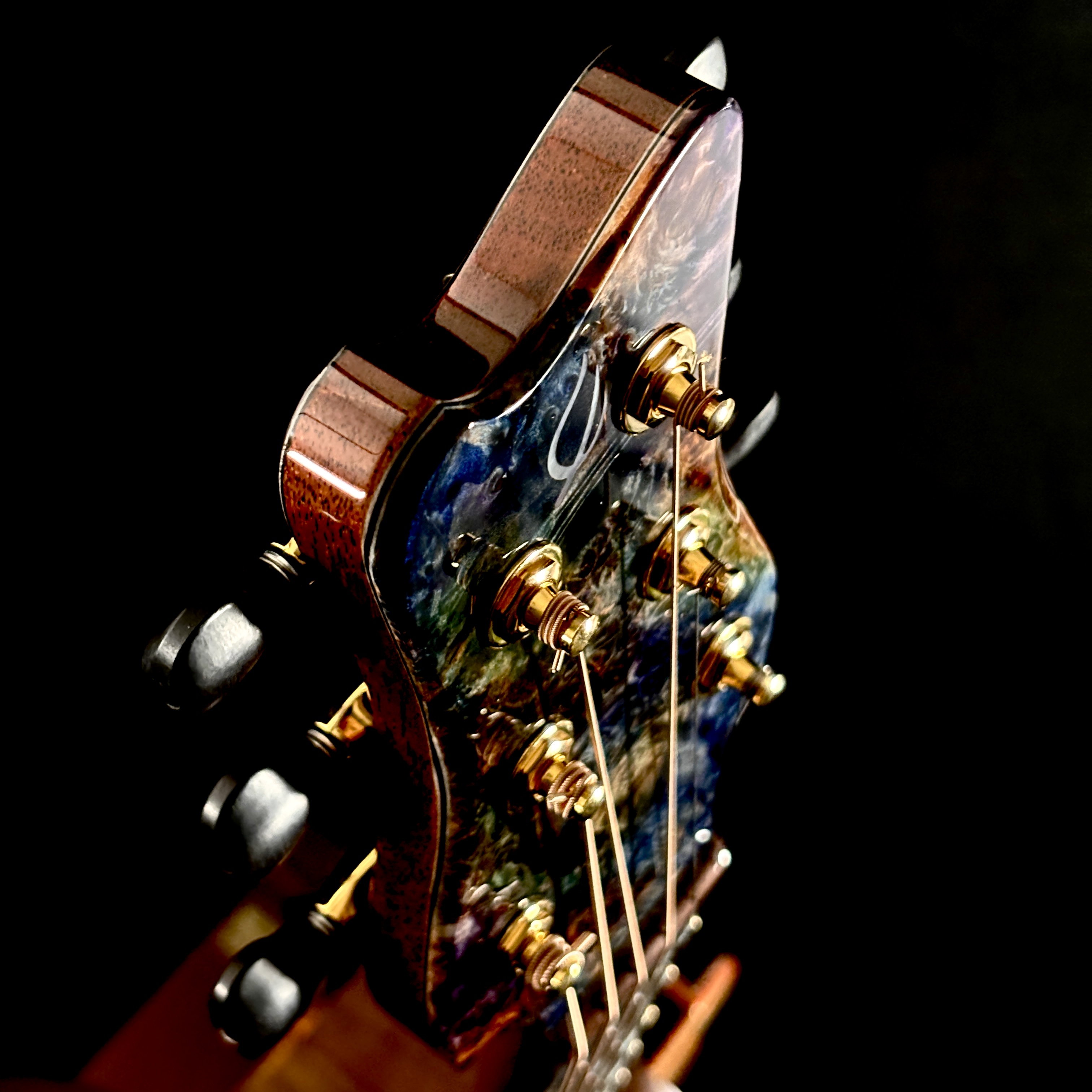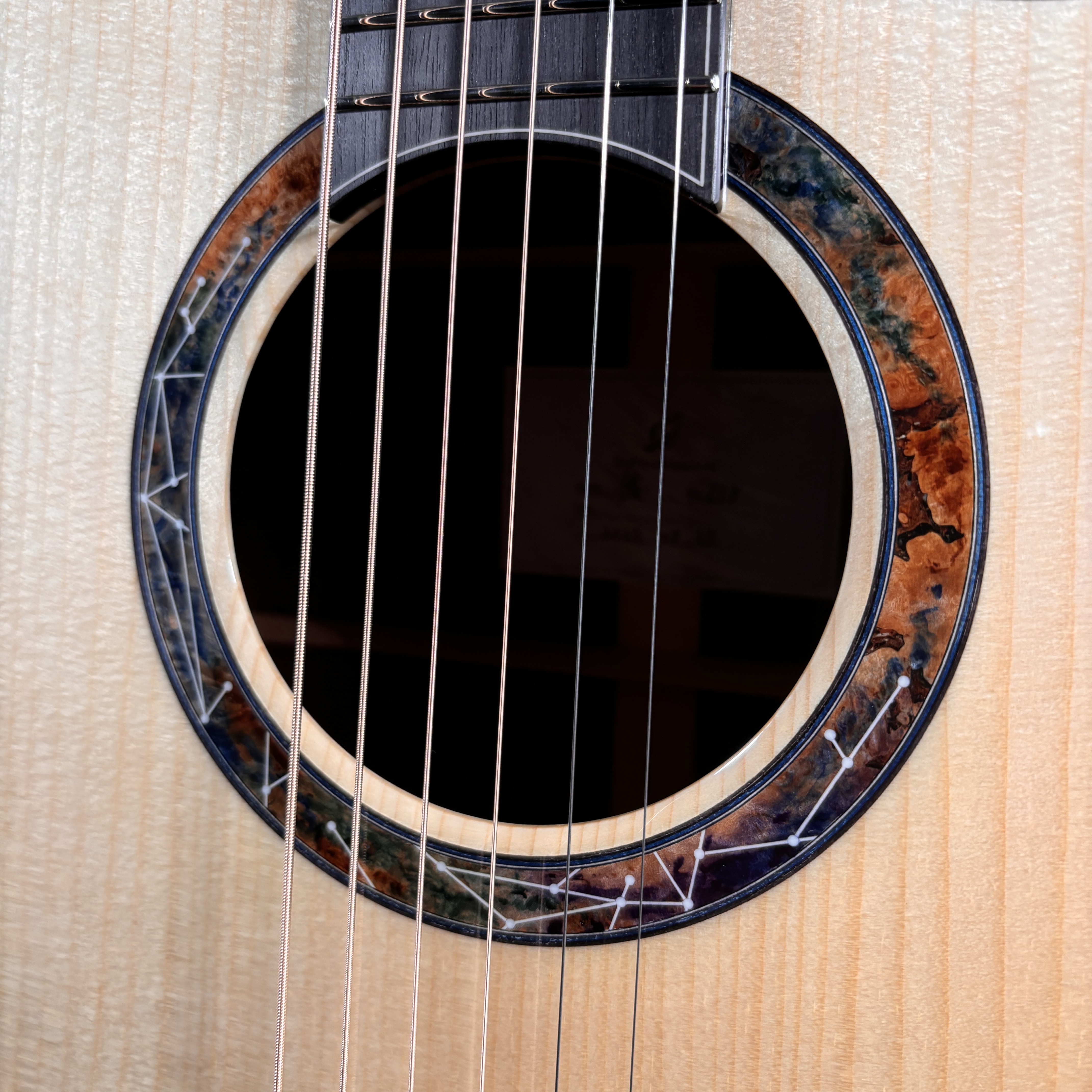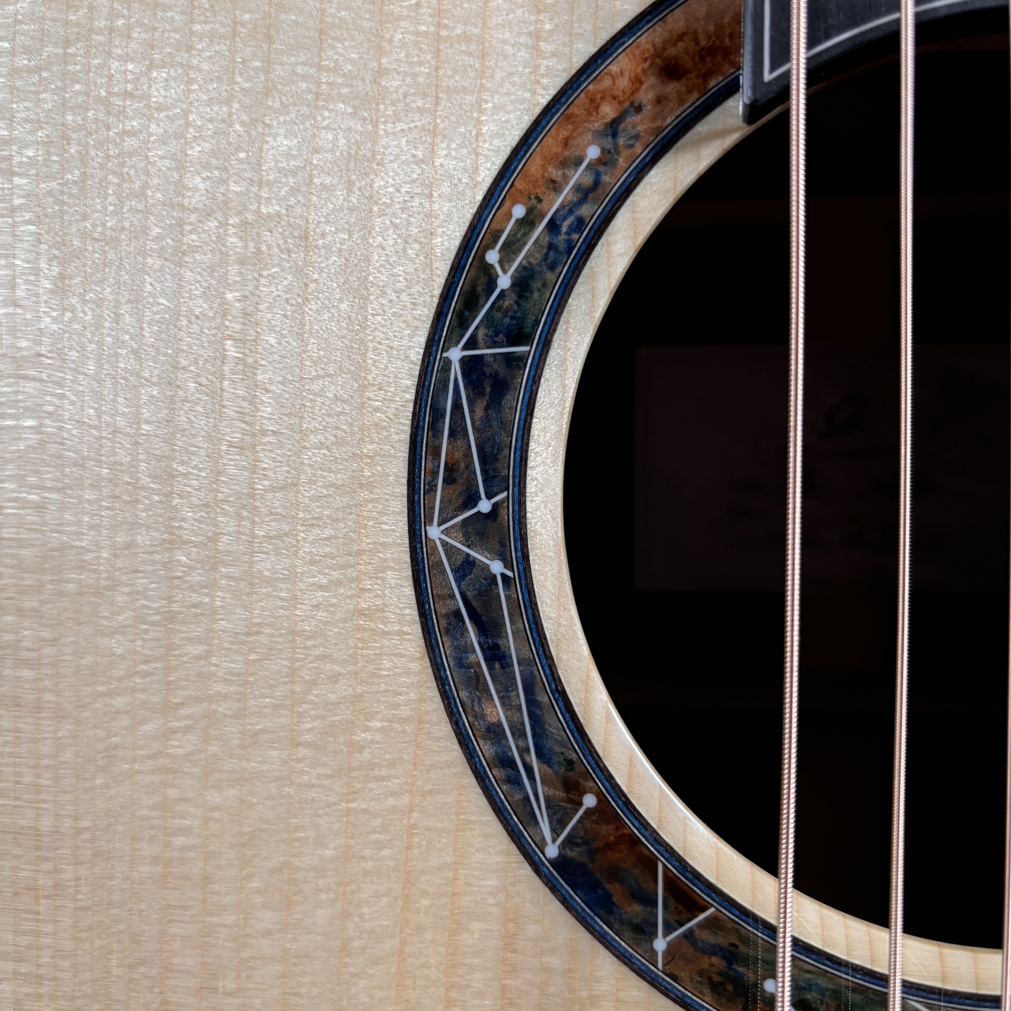 艶やかな外観を彩るのは、多色バールによる芸術的なロゼッタとヘッドプレート。カーリー・ハワイアンコア・バインディングが全体を包み込み、見るたび弾くたびに心を満たすプレミアムな存在感を放ちます。