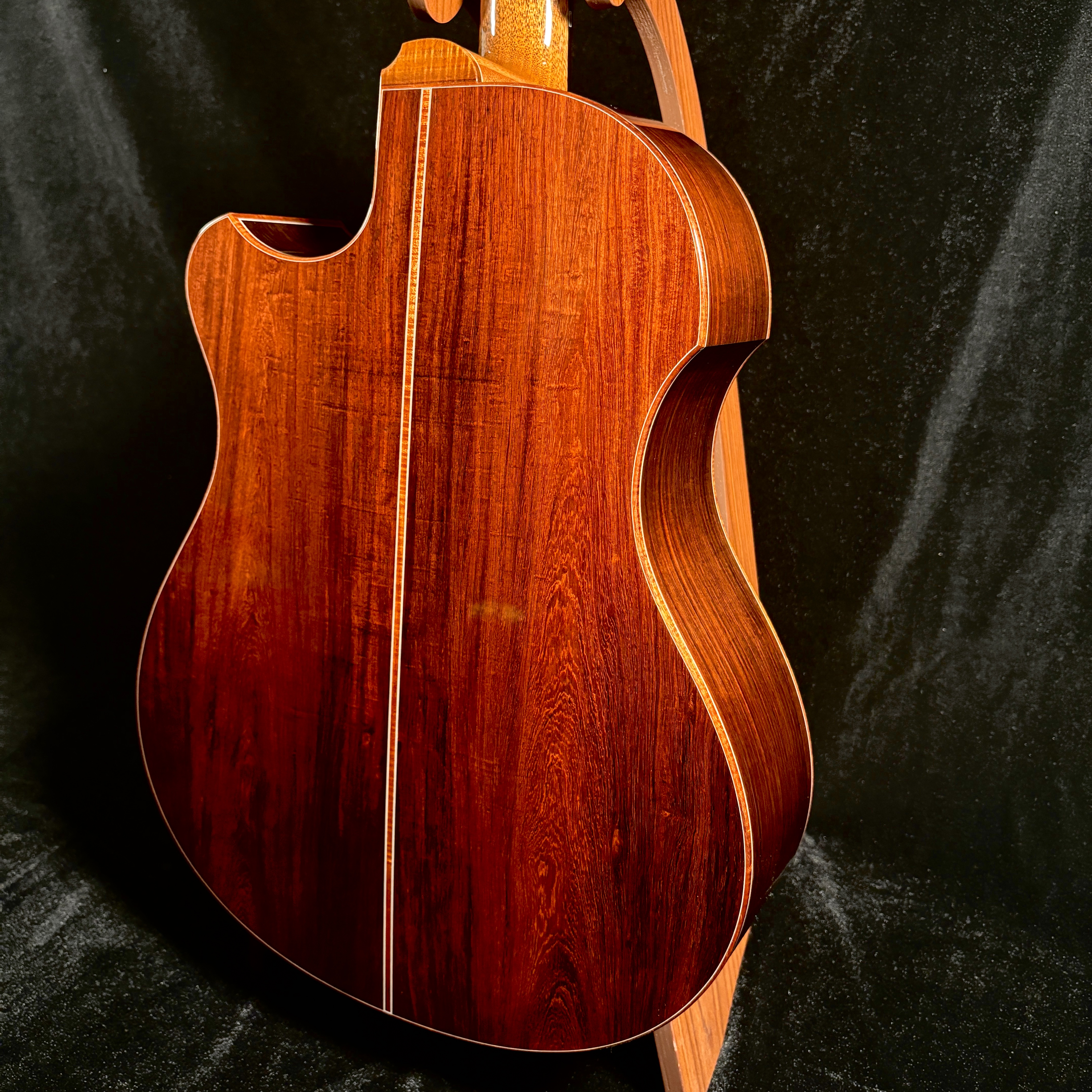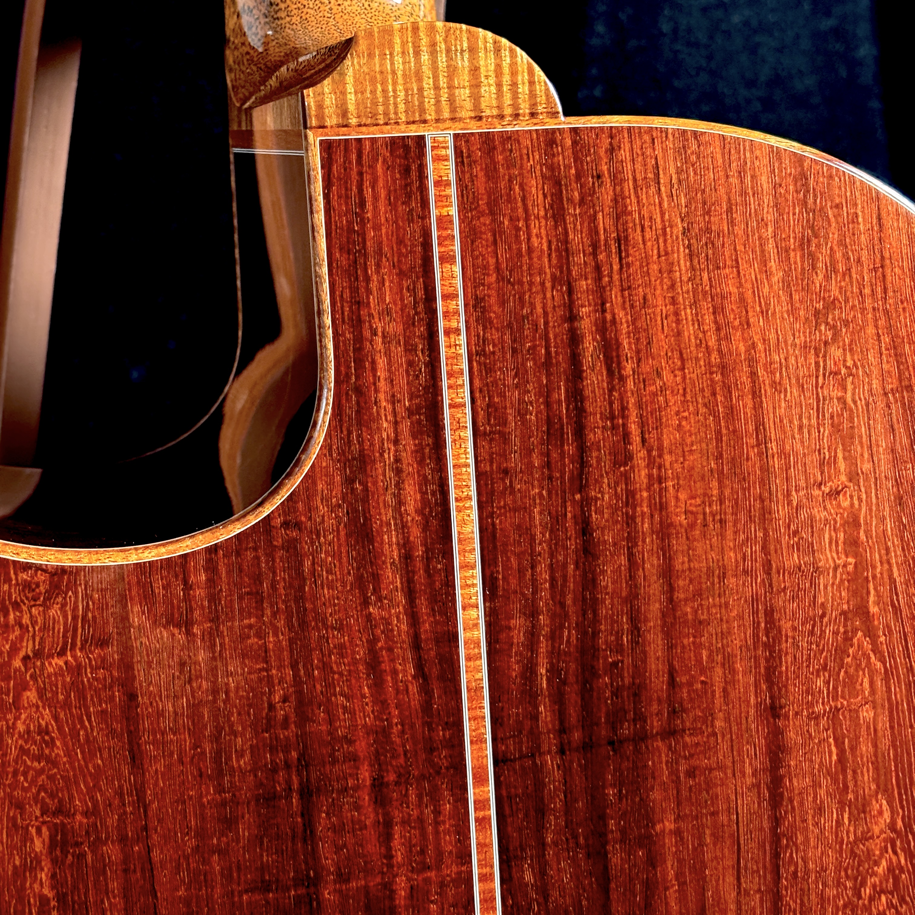 カーリー・ハワイアンコアのバインディングが、全体のトーンを引き締め、上質な統一感を生み出します