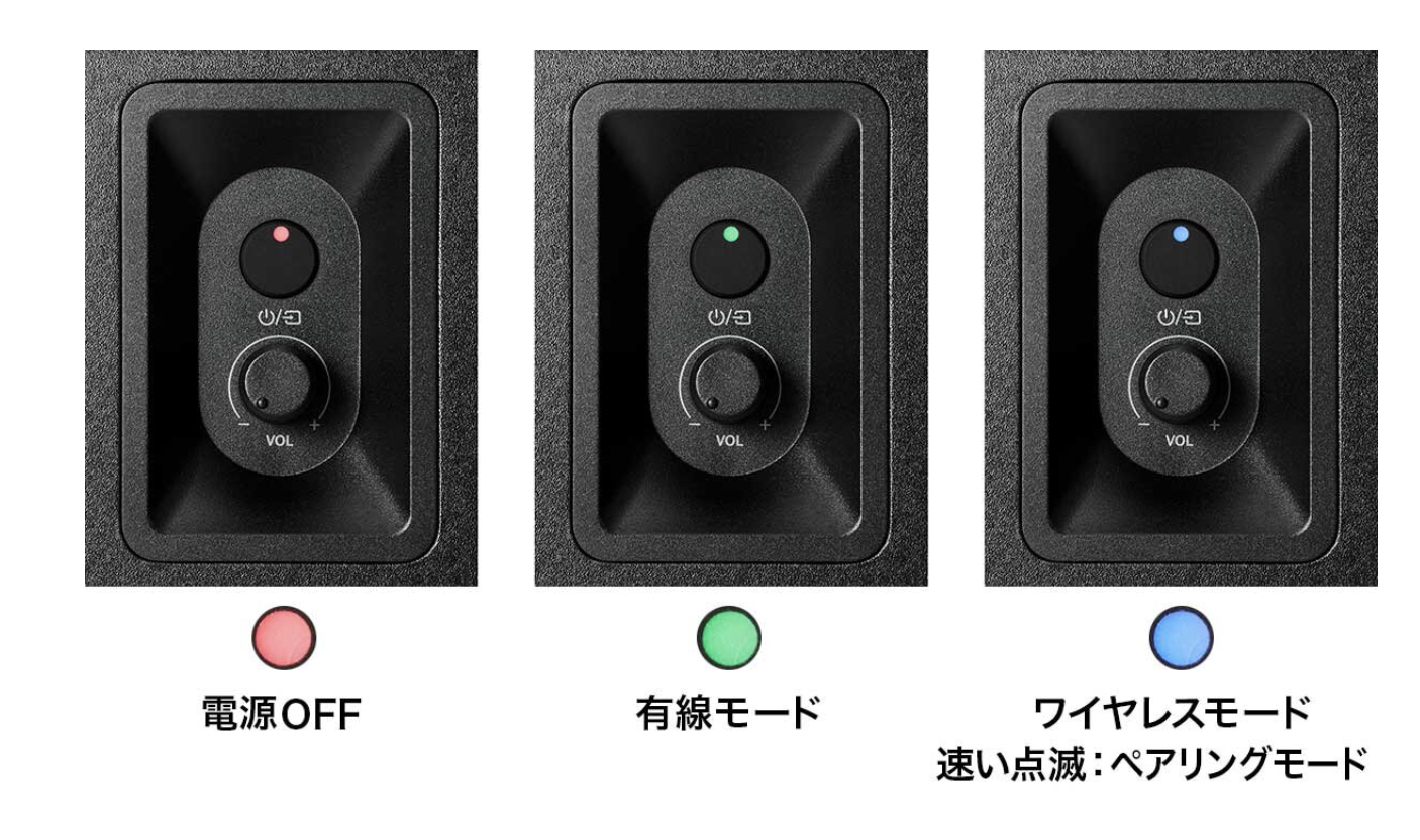 ボリュームと有線・ワイアレスの切り替えボタンです。