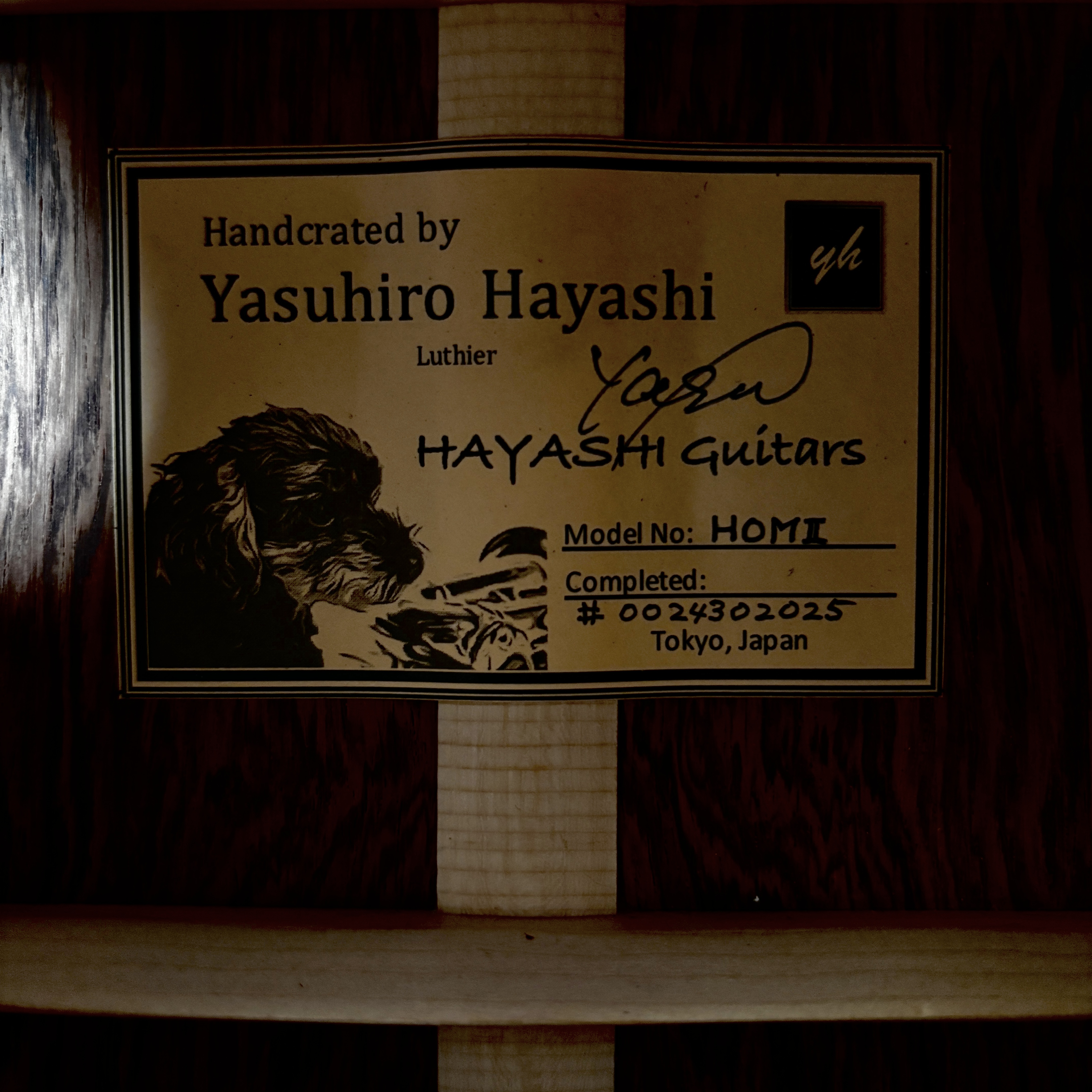 HAYASHI Guitars は、一つひとつを丹精込めて製作するオーダーメイドのアコースティックギターブランドです。創業者・林 泰弘は、アメリカ留学中にギターの音色の違いに感銘を受けたことをきっかけに、独学で製作を始めました。以来、伝統的な手法を尊重しつつも、最新技術や知見を積極的に取り入れながら、「演奏者の表現に敏感に応えるギター」を追求してきました。木材選びから塗装、仕上げに至る全工程を一人で行い、プレイアビリティの高さと独自性を兼ね備えたギターを提供しています。細部への徹底したこだわりが、「良いギター」と「特別なギター」を生み出し、多くの演奏者の表現を支えています。