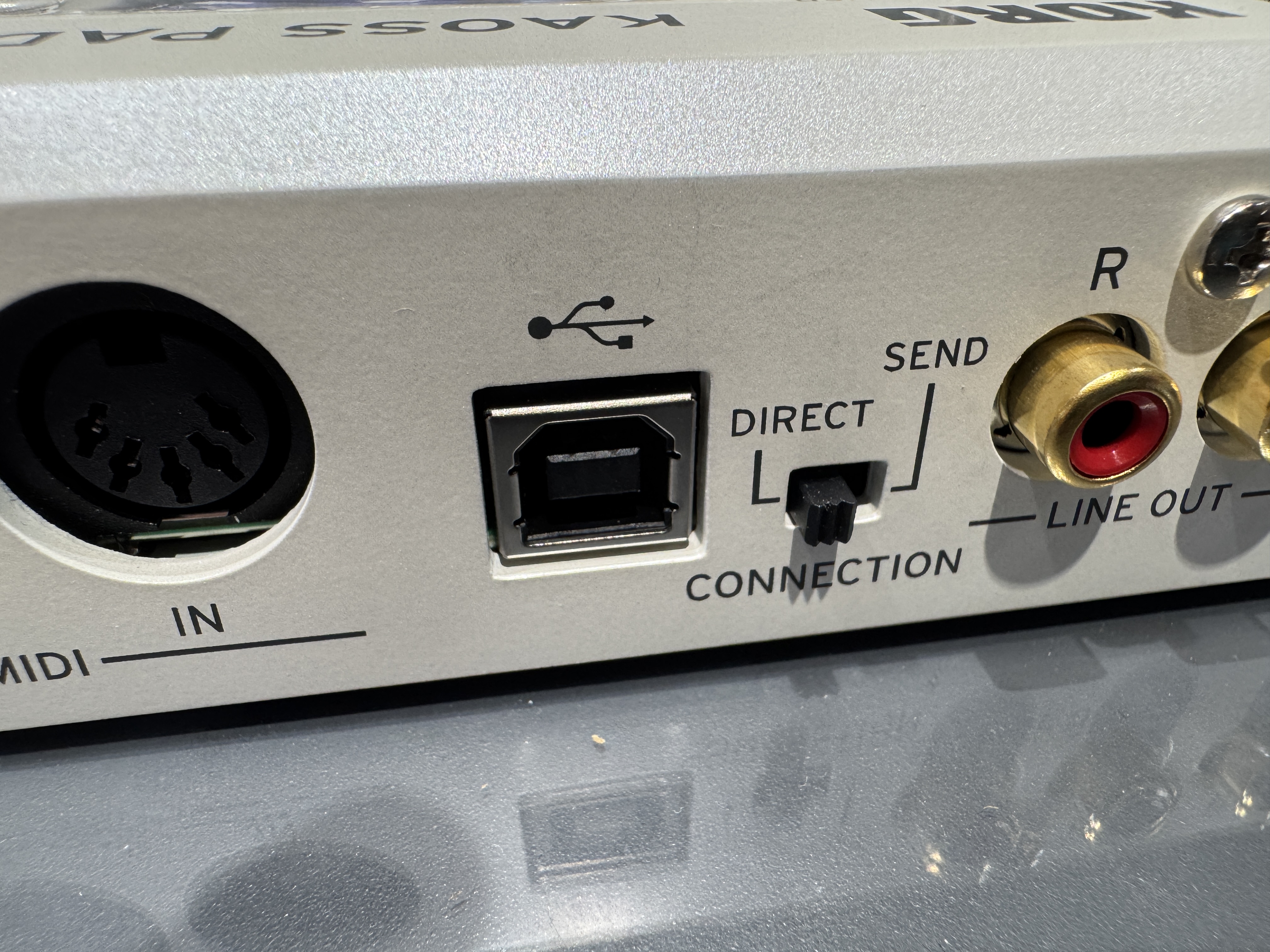 端子類も、基本は同じですが以前はUSB-MIDIだけだったのに対し、今回のKAOSS PAD VはUSBオーディオ・インターフェースを内蔵、DAWへの録音、ライブ配信でのエフェクト処理といったルーティングが可能。