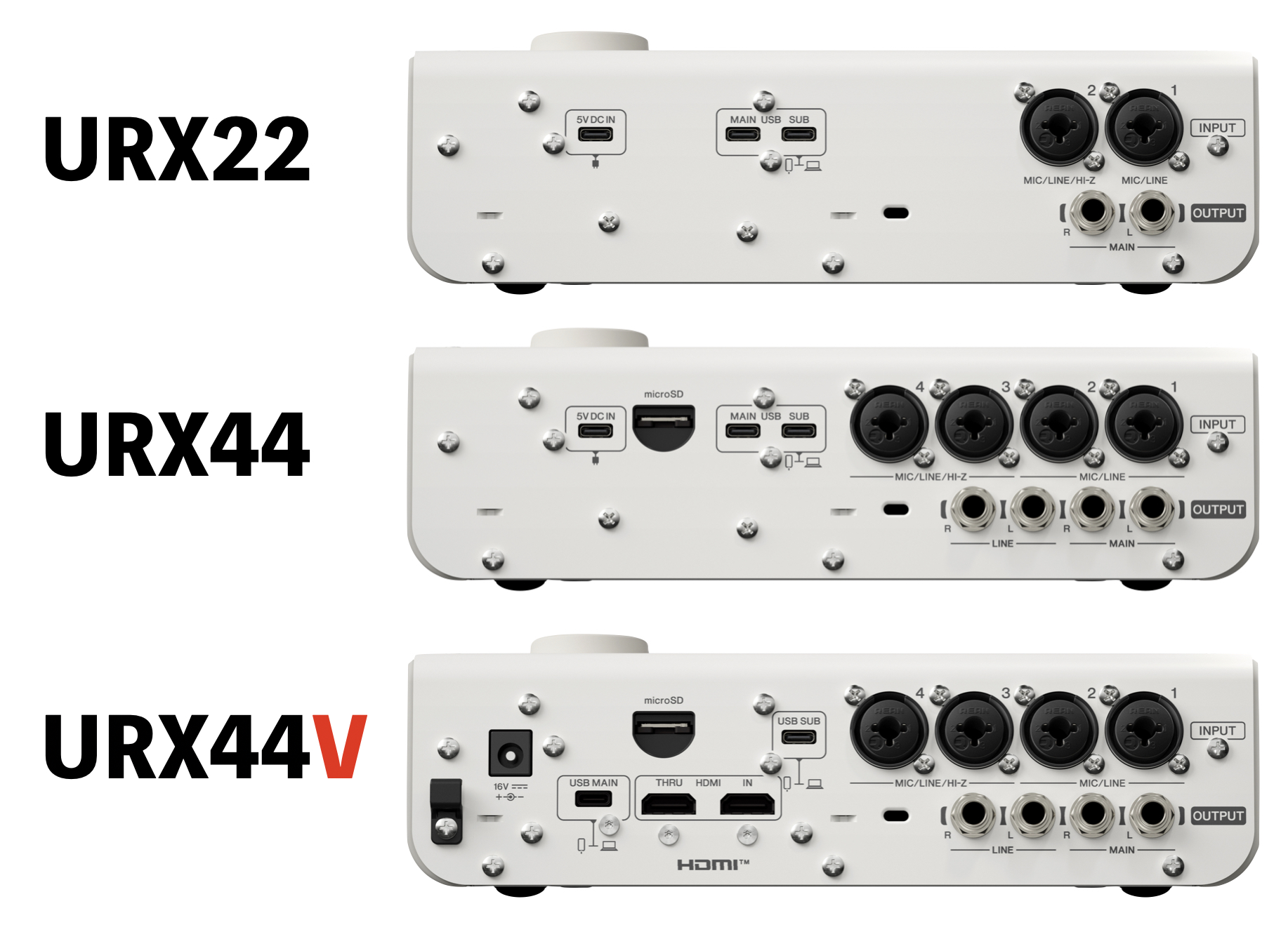 ネーミングがややこしいのですが、今回のURXシリーズはそれらと一線をなす音質、機能性を備えた上位モデルに位置するものです。3つのタイプがリリースされており、いずれのモデルも音質やLCDタッチパネルを搭載し様々な機能を本体だけでコントロールできる点は同一ですが、それぞれの入出力端子に違いがあるようです。