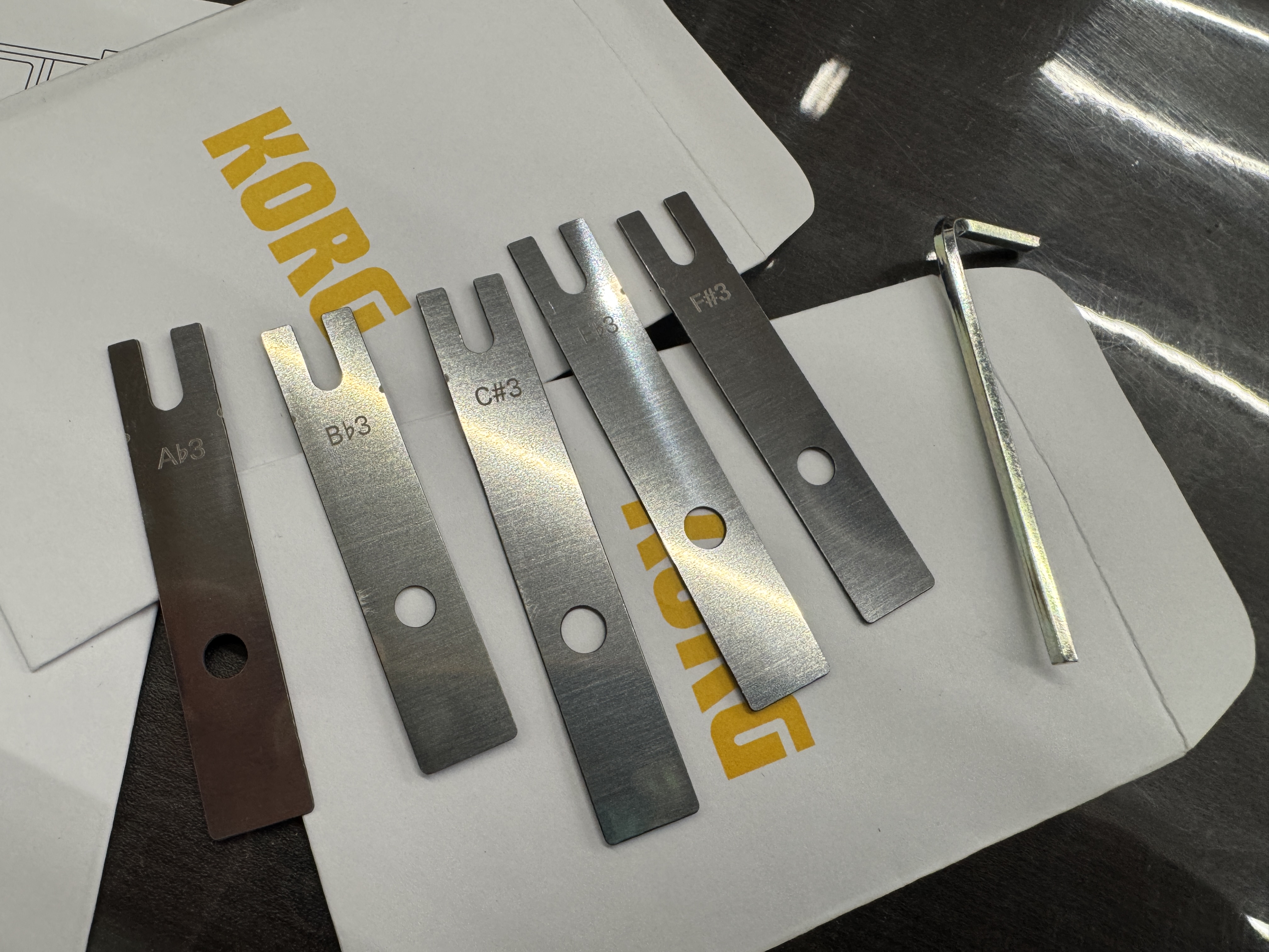 金属のレゾネーターも、本体に取り付けられている8本に加え、プラスで5本、合計13本付属し任意に差し替え可能。