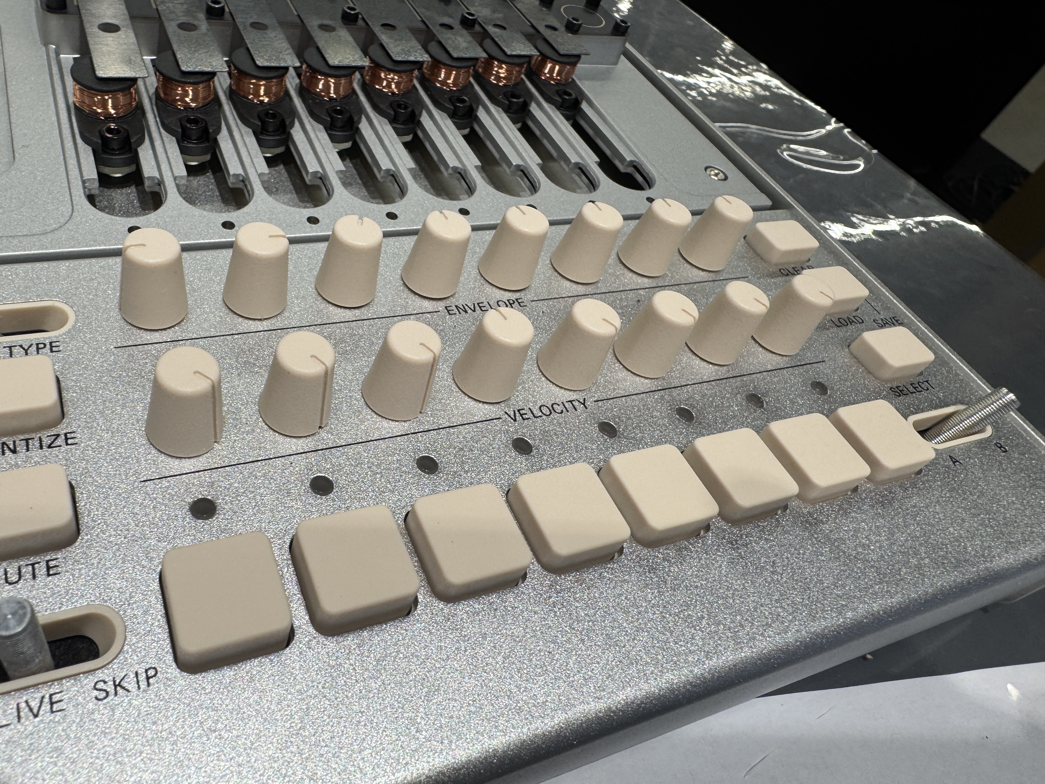 また、物理的にレゾネーターを叩くだけでなく本体下部のボタンで鍵盤のように音をトリガーしたり、ポリメトリック・リズム・シーケンサーも搭載しているためただ演奏するだけでなく予め打ち込んでおいたフレーズを再生させることも可能です。