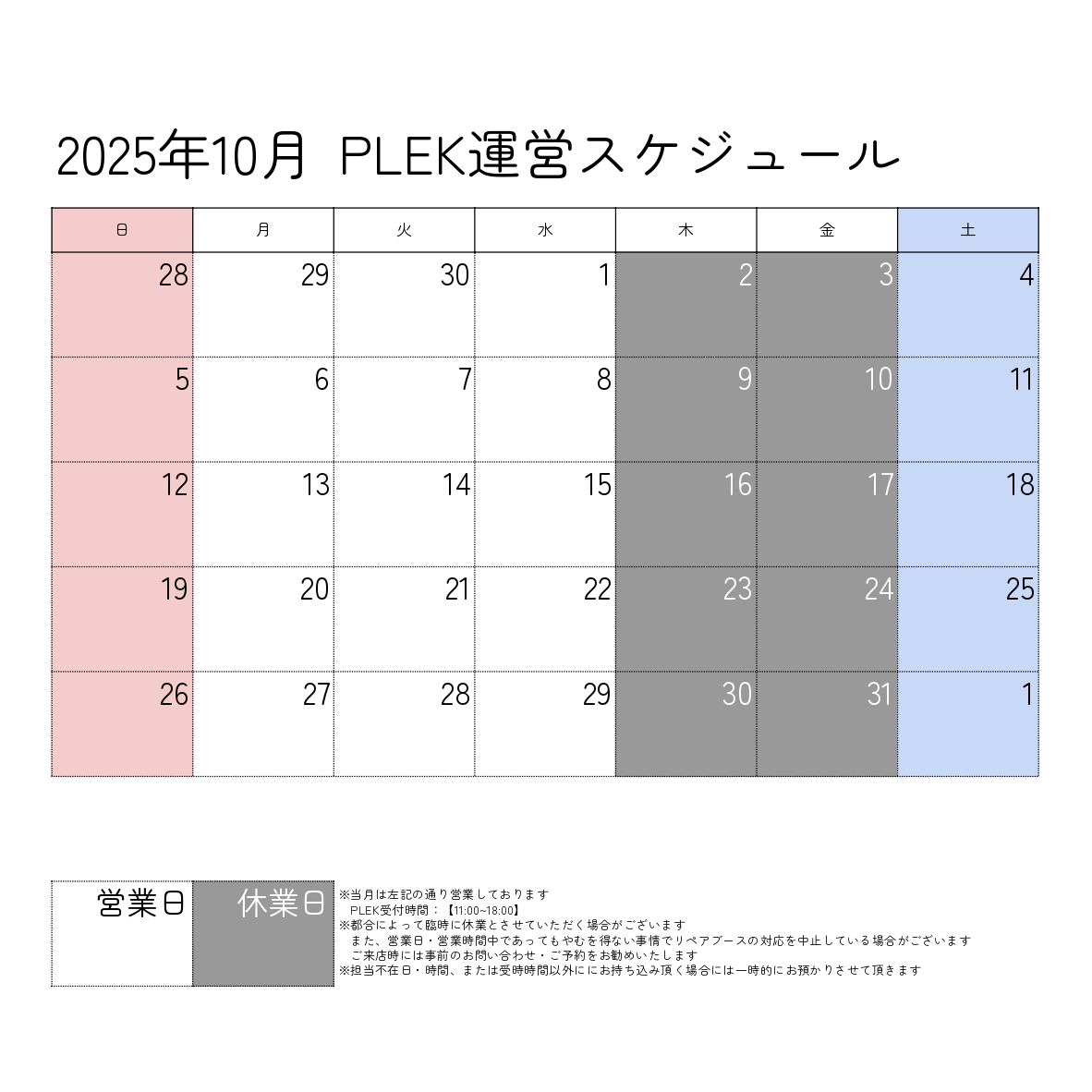 今月のPLEK運営スケジュール
