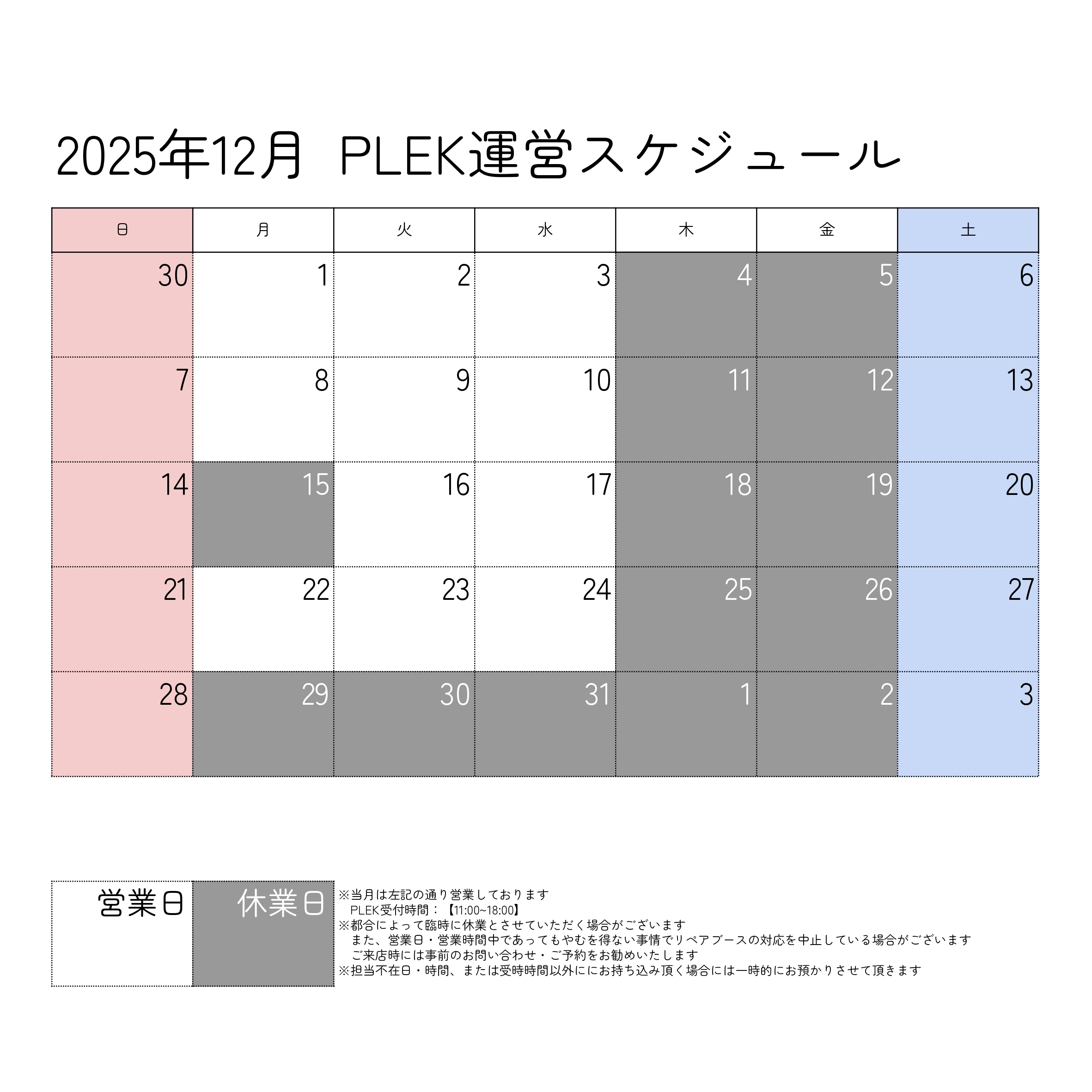詳しくは店頭リペアマン:瀧口またはPLEKオペレーター:小林までお問い合わせ下さい。