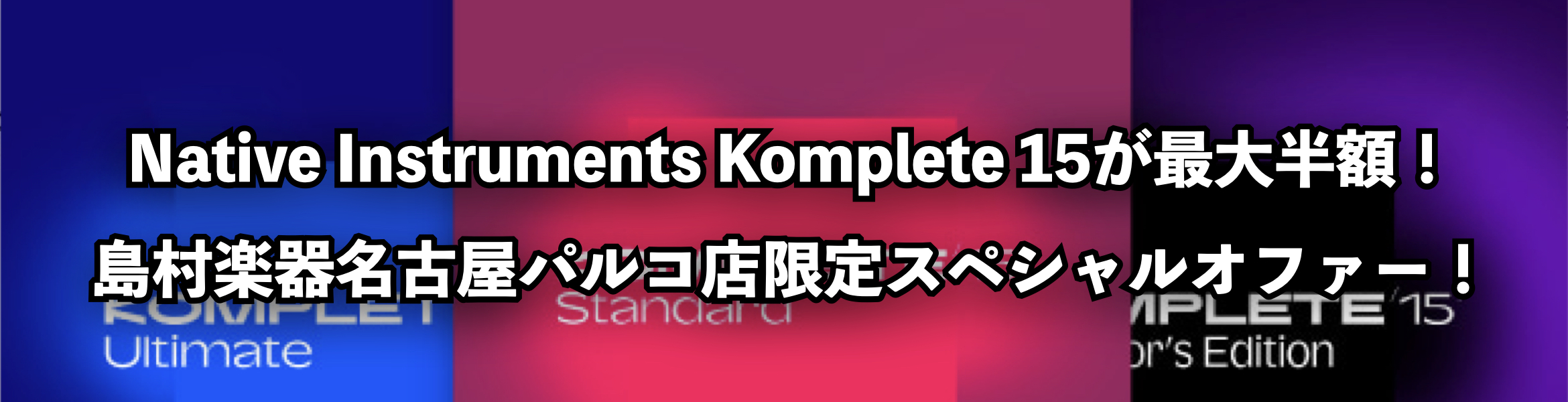 | Native Instruments | Native Instruments KOMPLETE 15 Ultimate アップグレード for Standard | 92,500円 | 46,200円 | こちら |