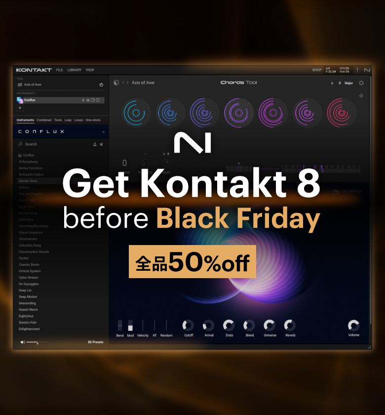 もうすぐブラックフライデーの時期がやってきます。音楽制作環境をアップグレードするために、見逃すことのできない時期です。 もちろん、ブラックフライデーセールには各社のKontakt対応ライブラリも加わる可能性が高いでしょう。それに備えて、今のうちにホストサンプラーであるKontakt 8を今のうちに手に入れておきませんか?