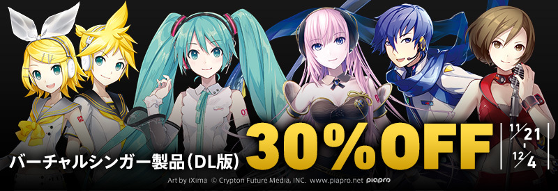 初音ミクをはじめとするクリプトン社のボーカロイド各種が30%OFF!!