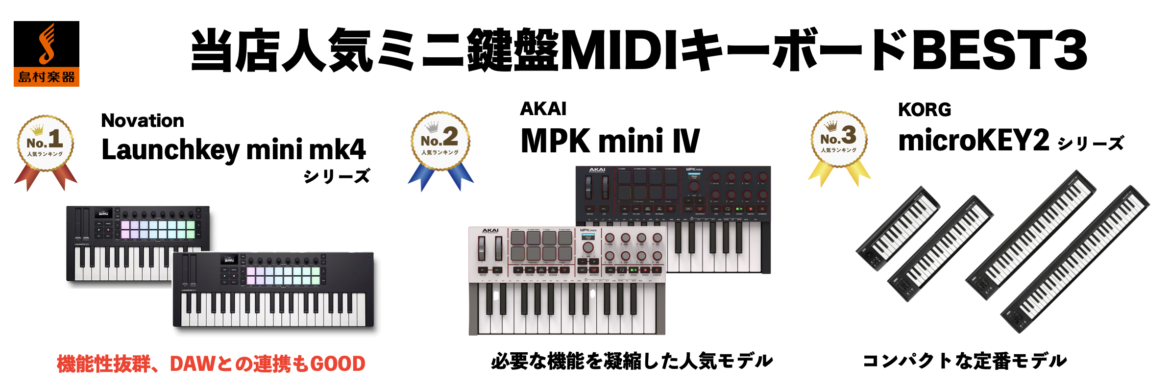 ![皆さんこんにちは、島村楽器名古屋パルコ店の立浦です!本日は音楽制作における“MIDIキーボード(MIDI鍵盤)”についてご紹介! PC/Macでの音楽制作がトレンドとなっている昨今、これから曲作りチャレンジしてみたい!という方も多いのではないかと思います。その際に必要となってくるものとして、音楽制作 […]](https://www.shimamura.co.jp/shop/nagoya/wp-content/uploads/sites/50/2021/04/20210414-miditop.png)