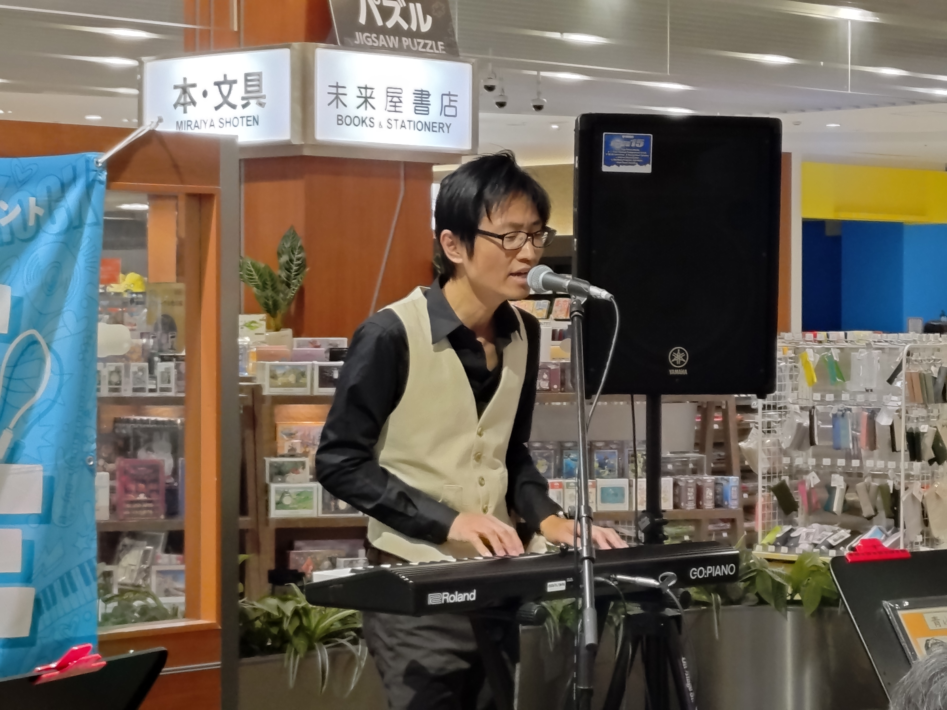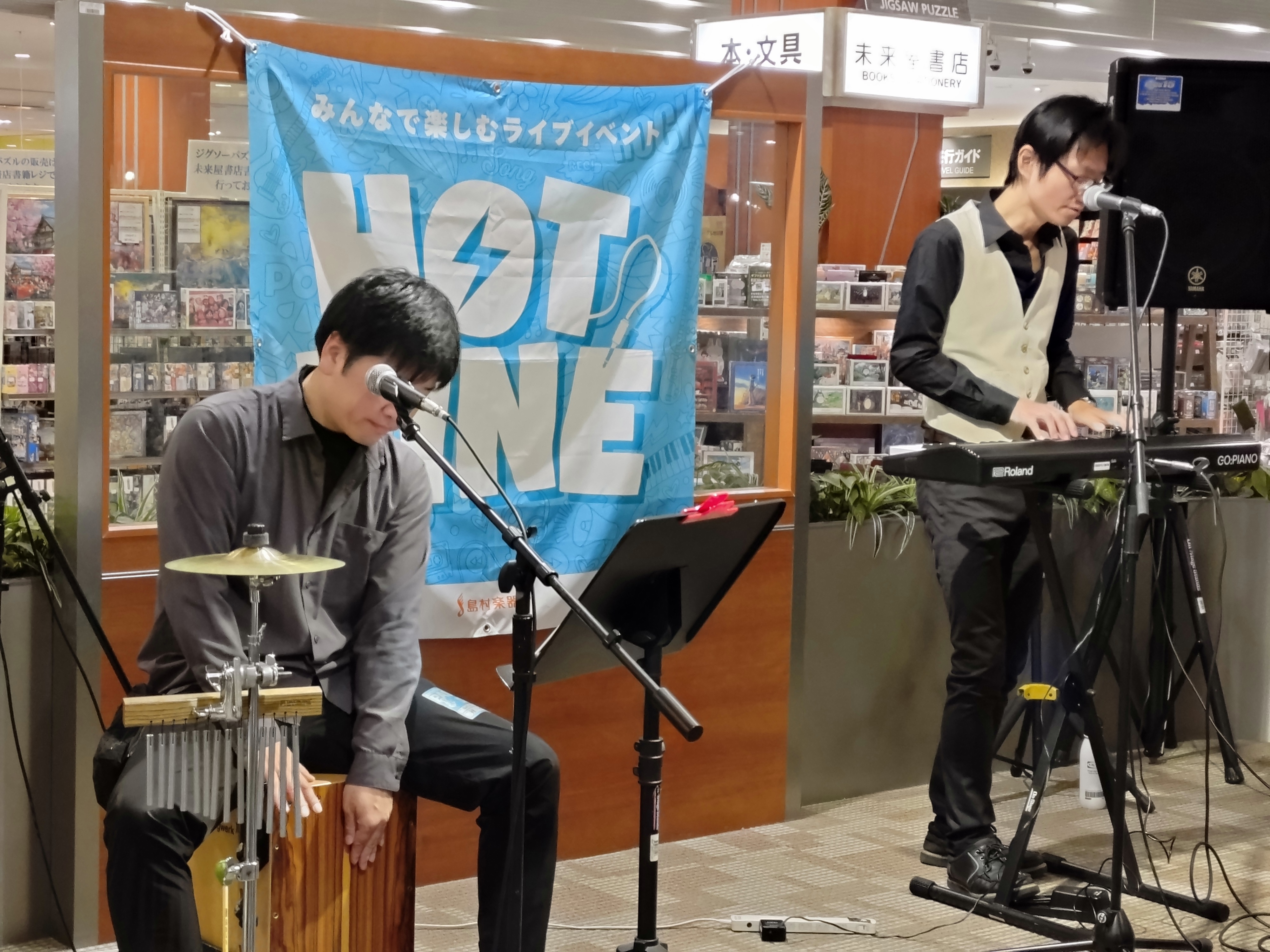 前回はキーボードによる弾き語りでソロで出演された青山ひろしさんが、カホン奏者とのデュオで参戦。なかなかありそうでないキーボードとカホンという組み合わせでの演奏で、素敵なハーモニーも聴かせてくれました。
