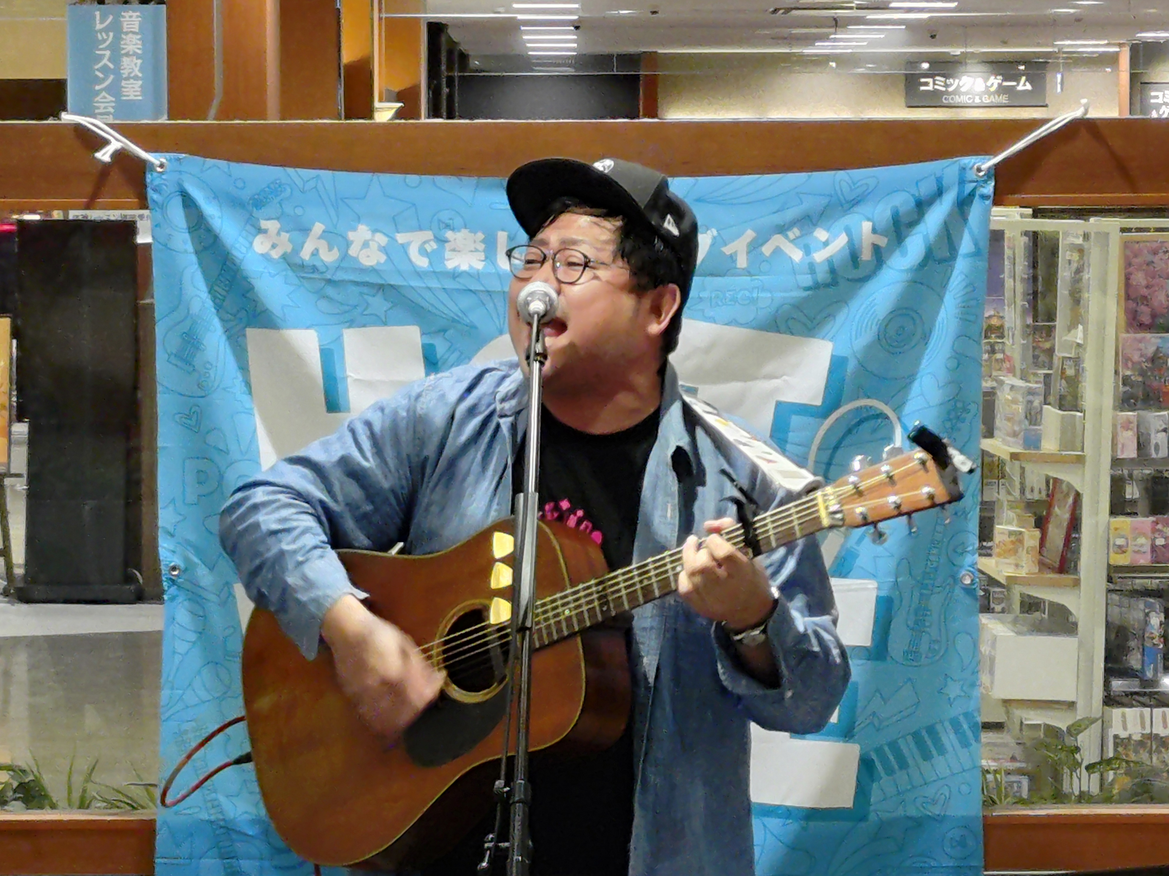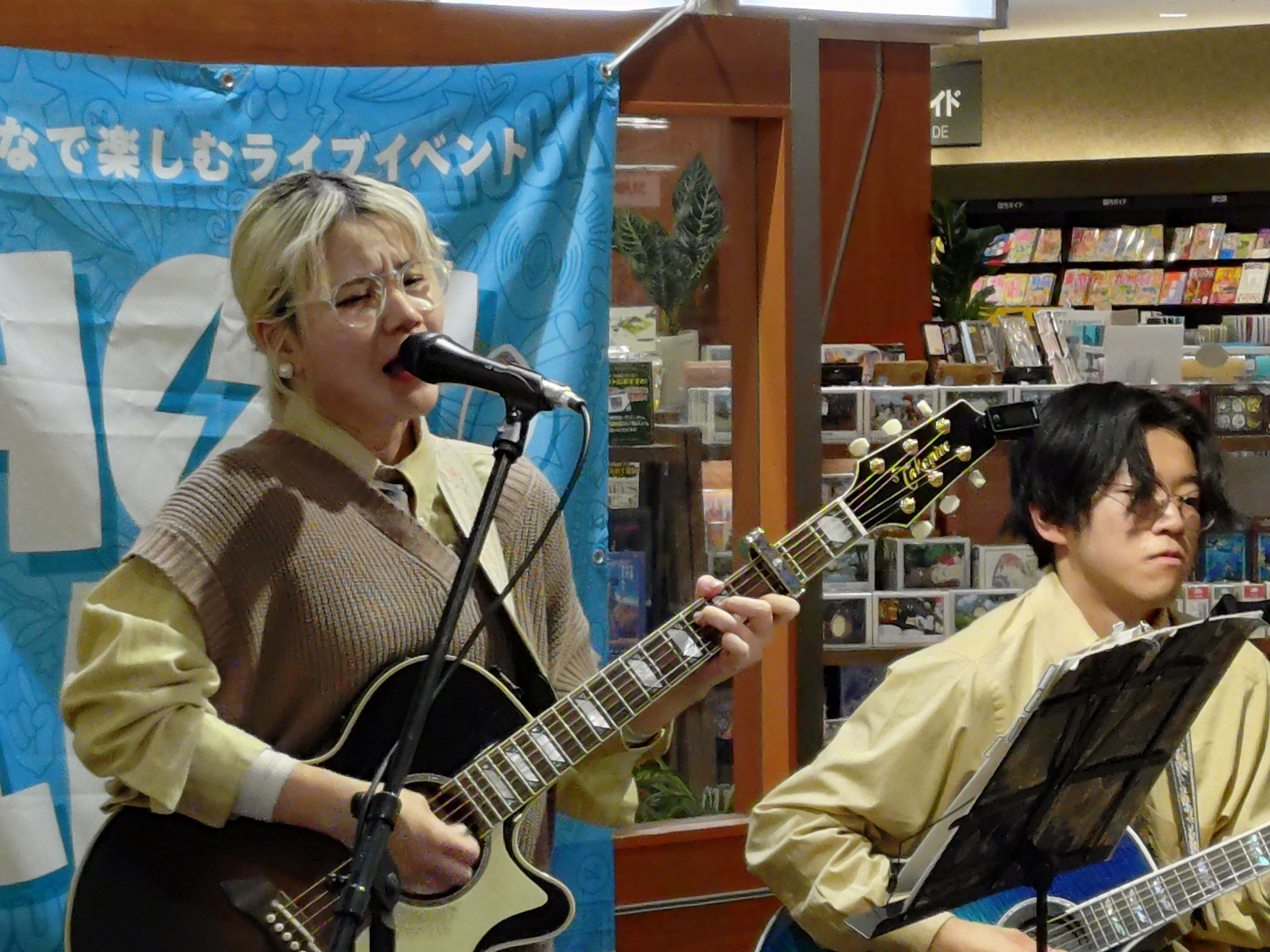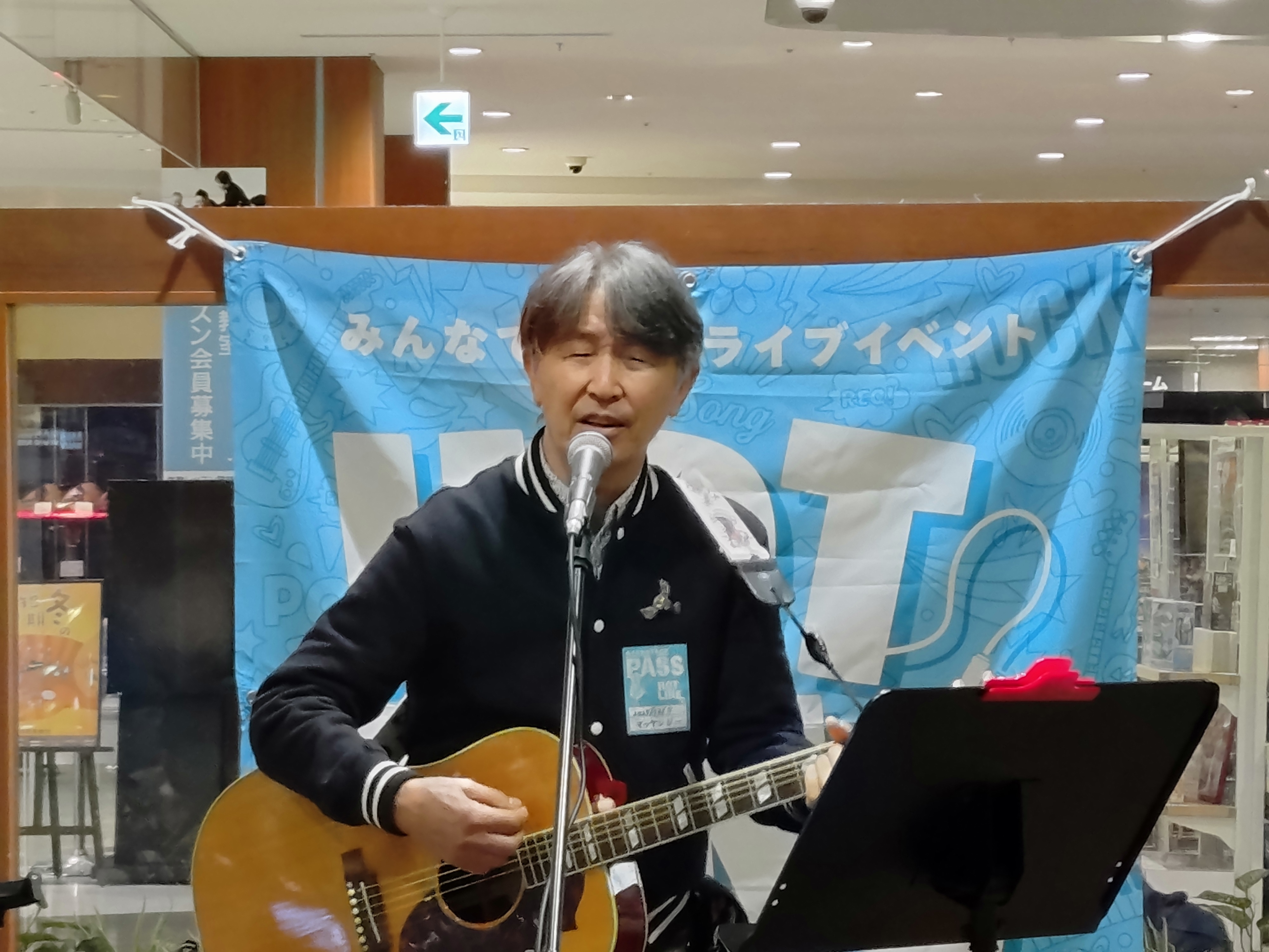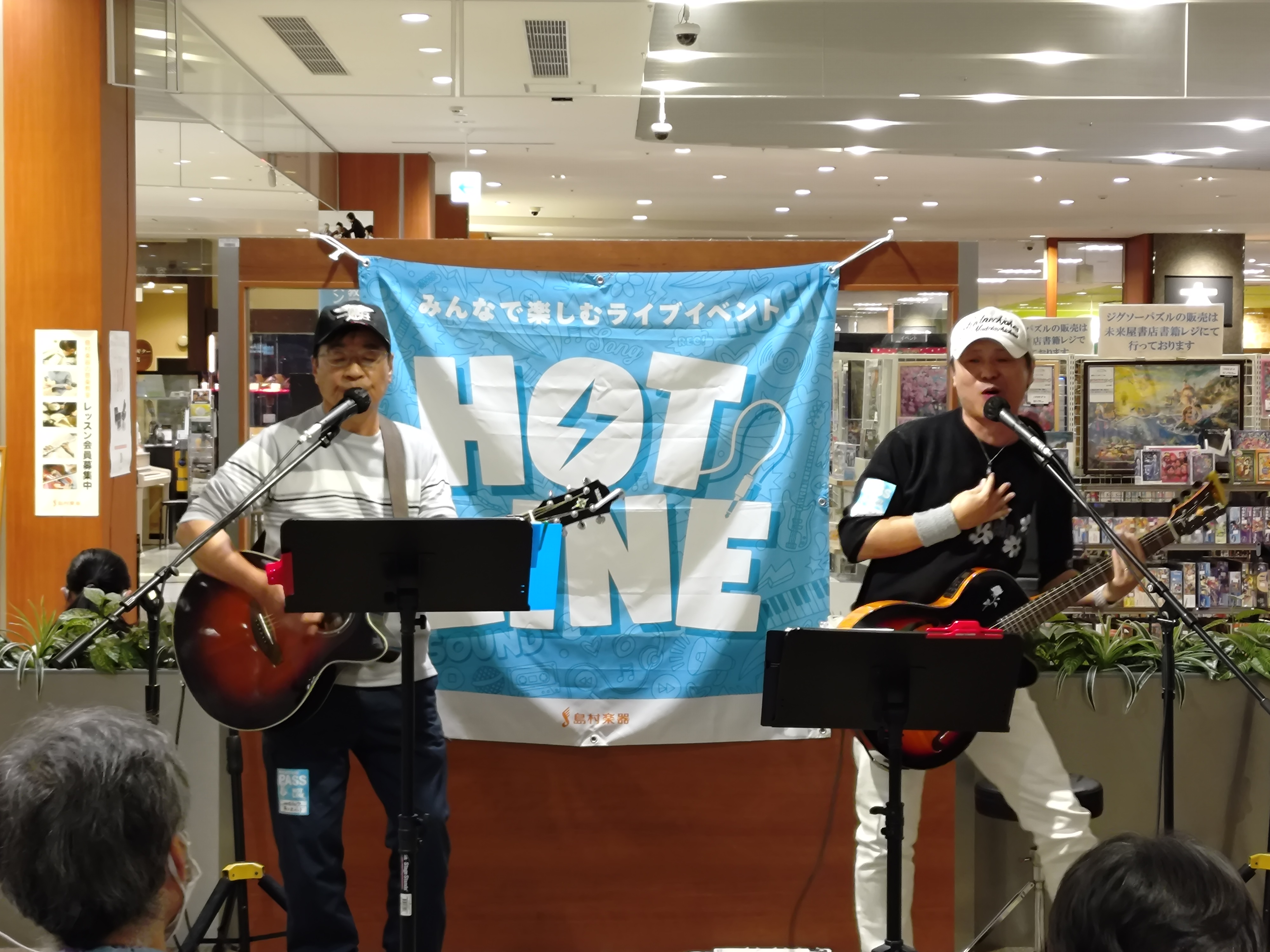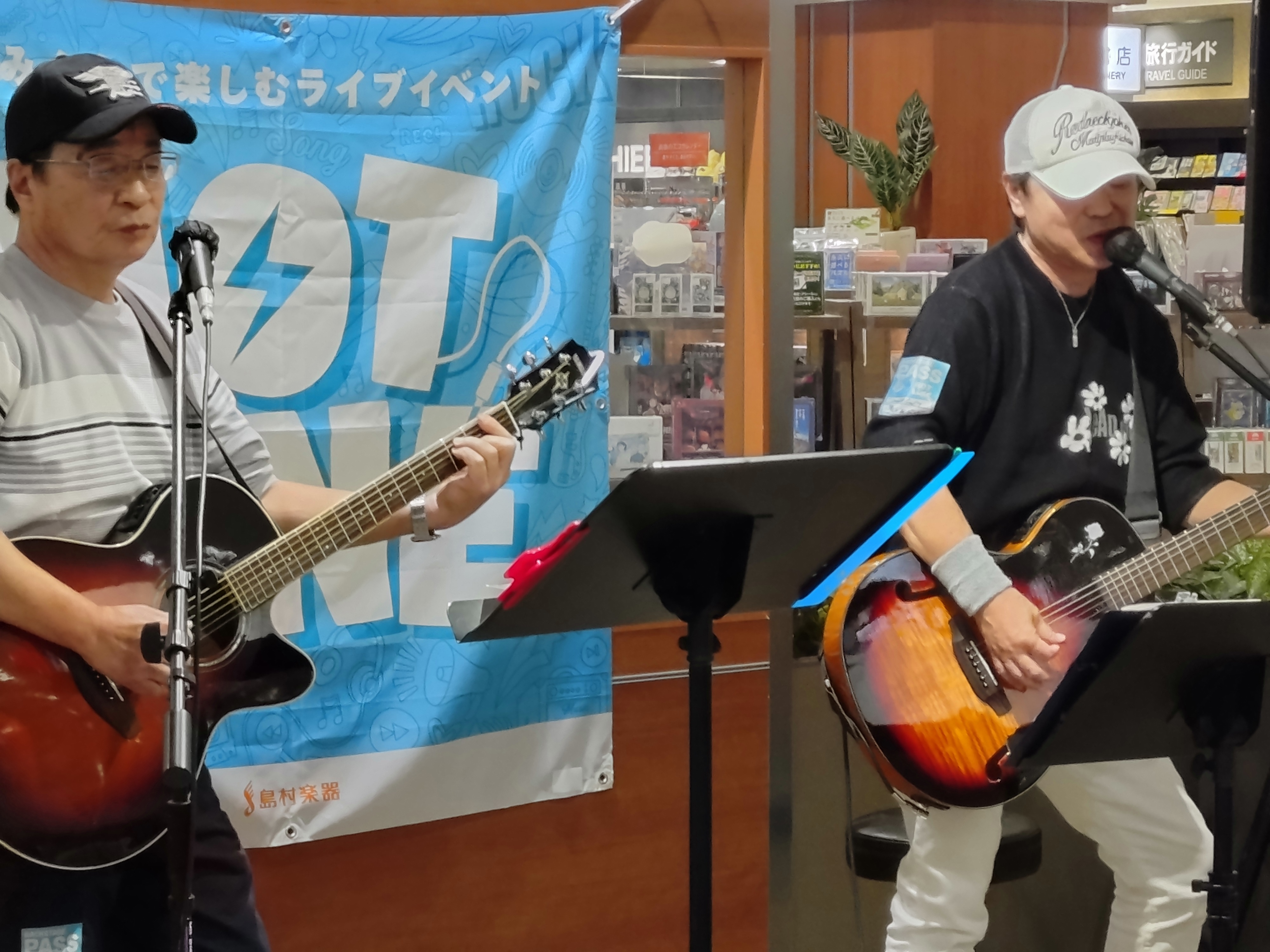 普段はバンド形式でもライブをされていますが、今回はアコースティックデュオとして出演です。ボーカルの掛け合いも織り交ぜながら、年齢を感じさせない熱くエネルギッシュなステージを披露、ライブ会場を盛り上げてくれました。