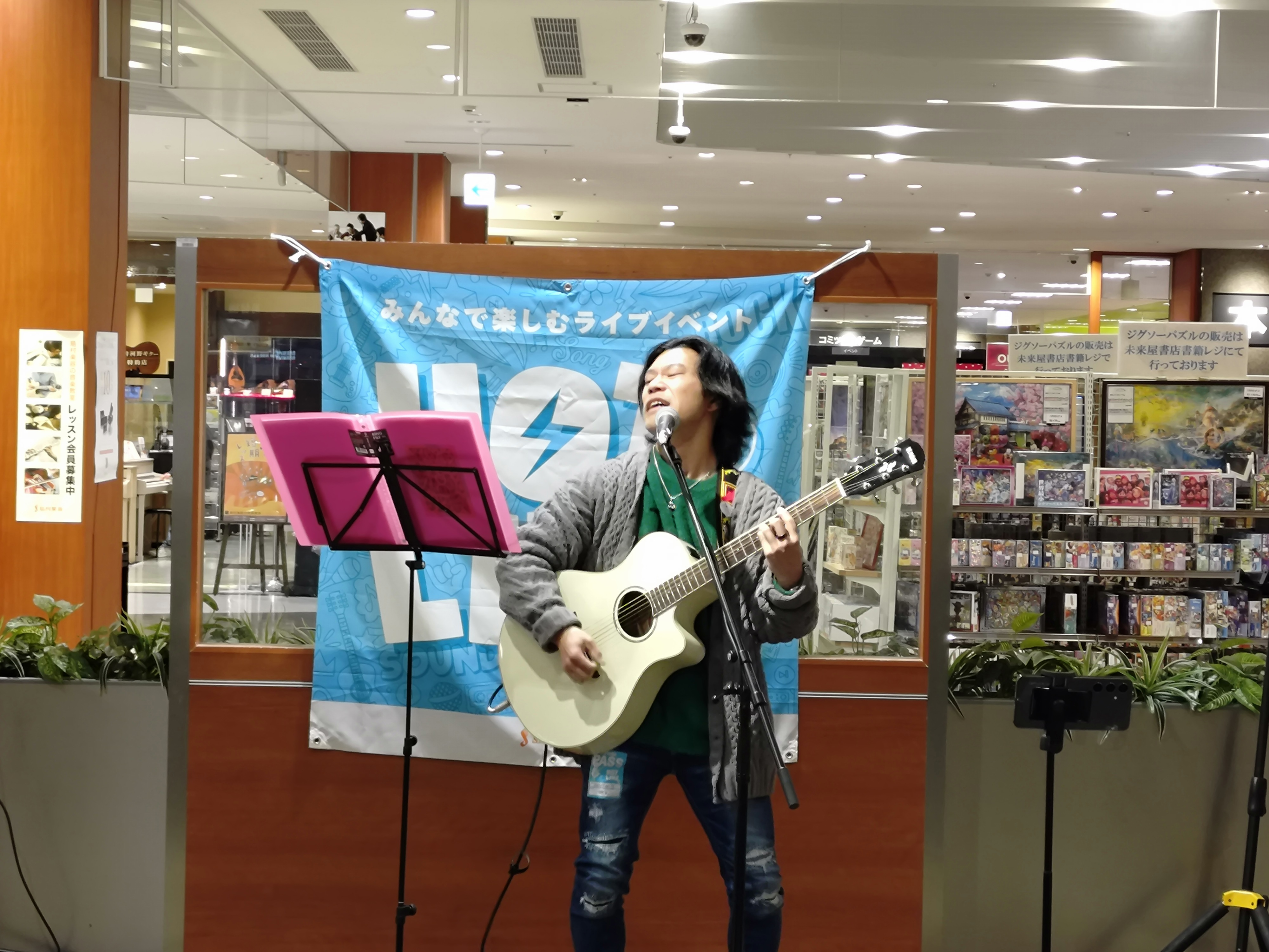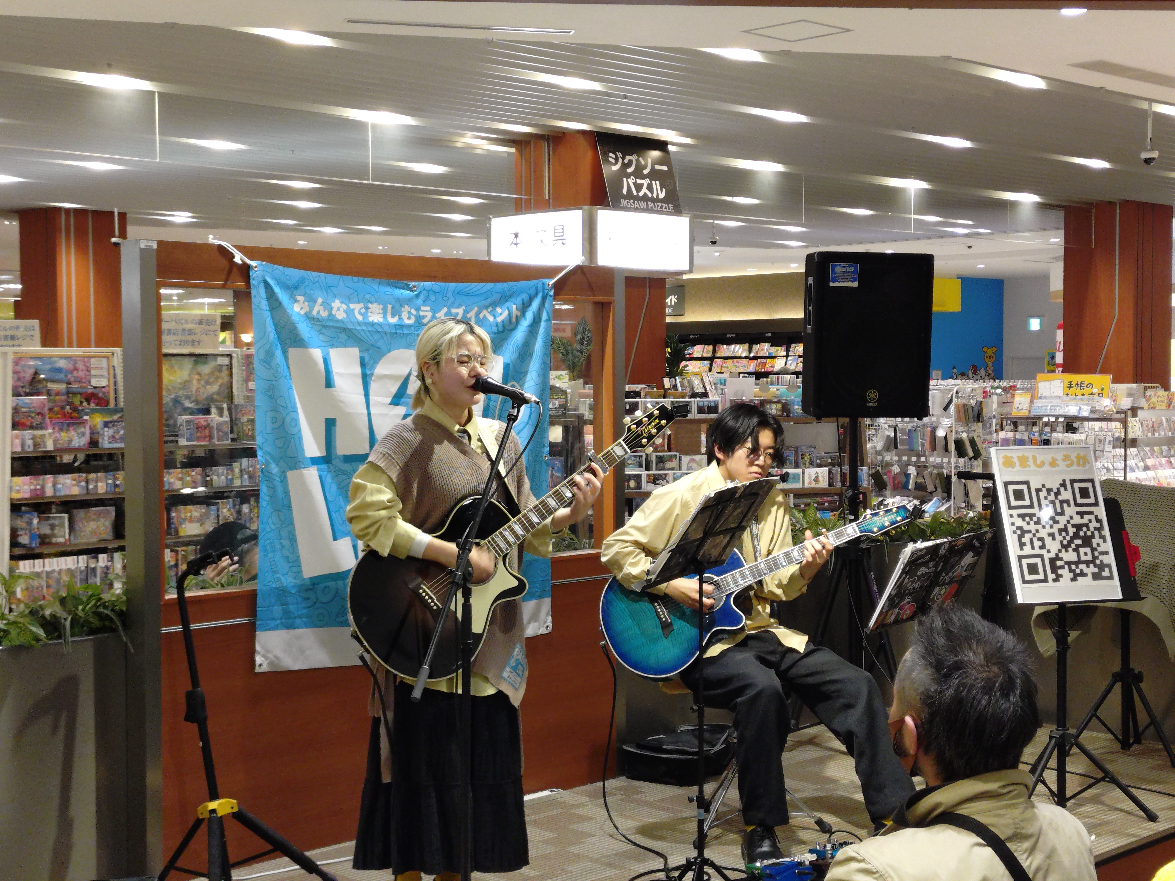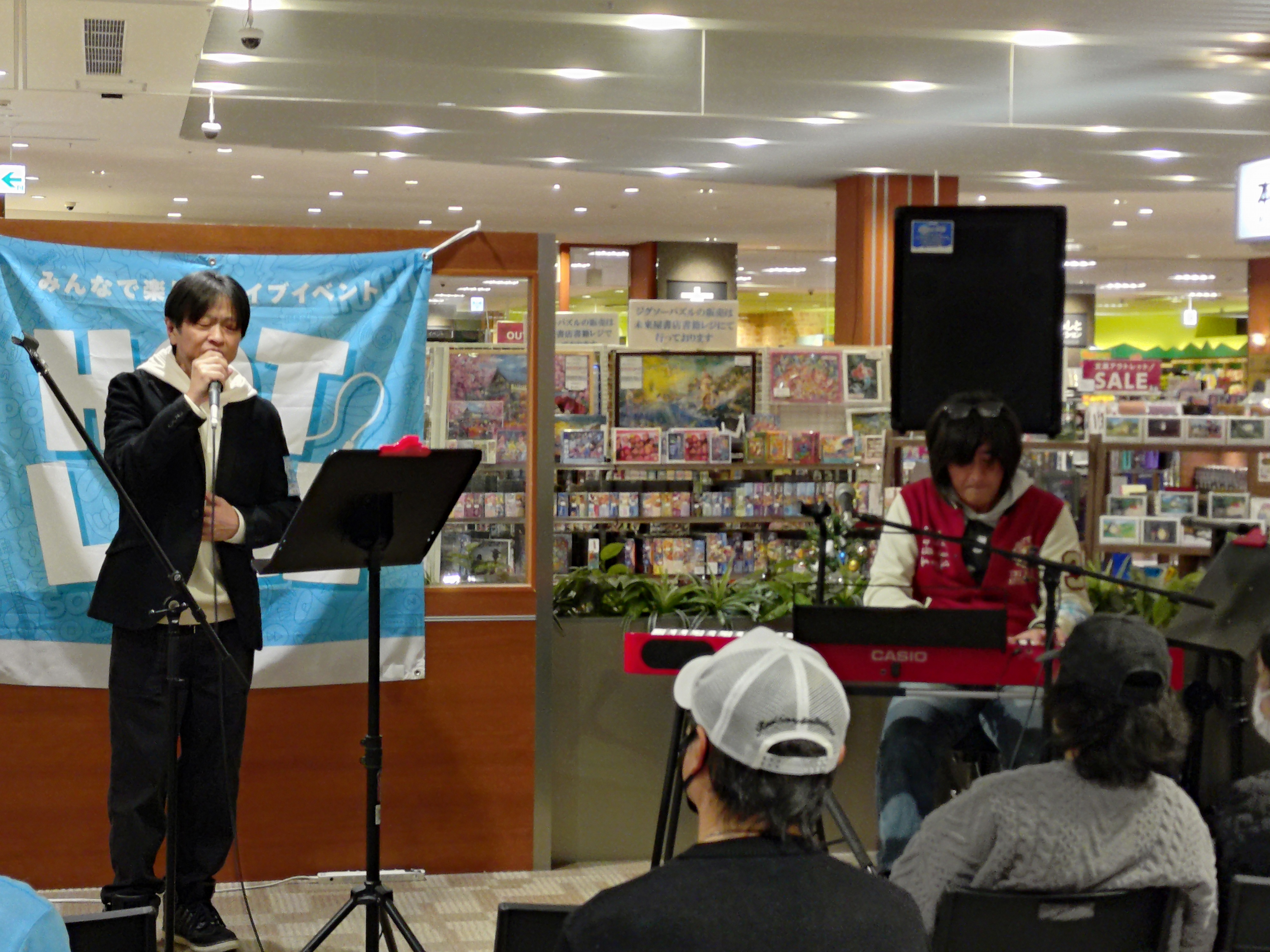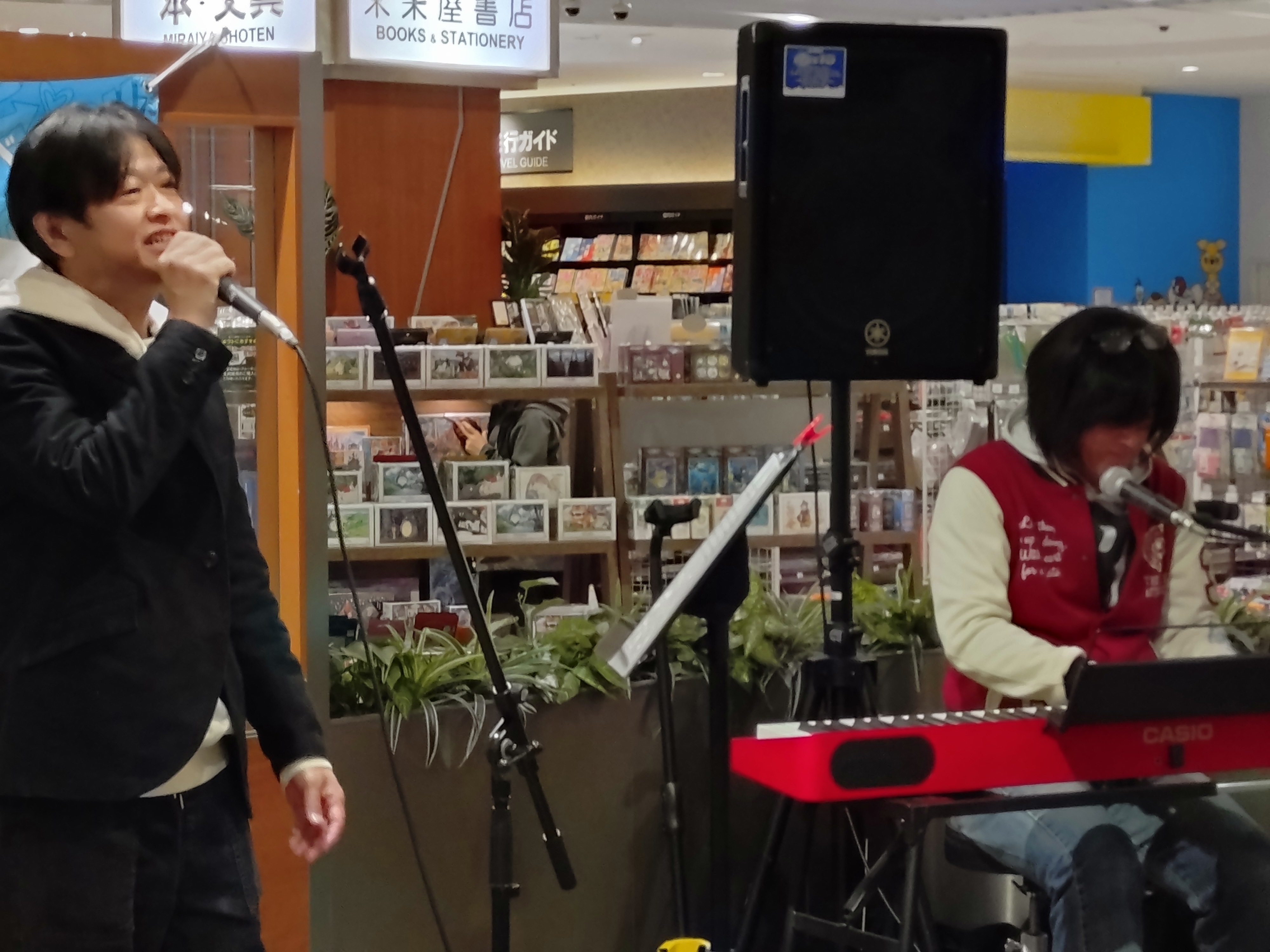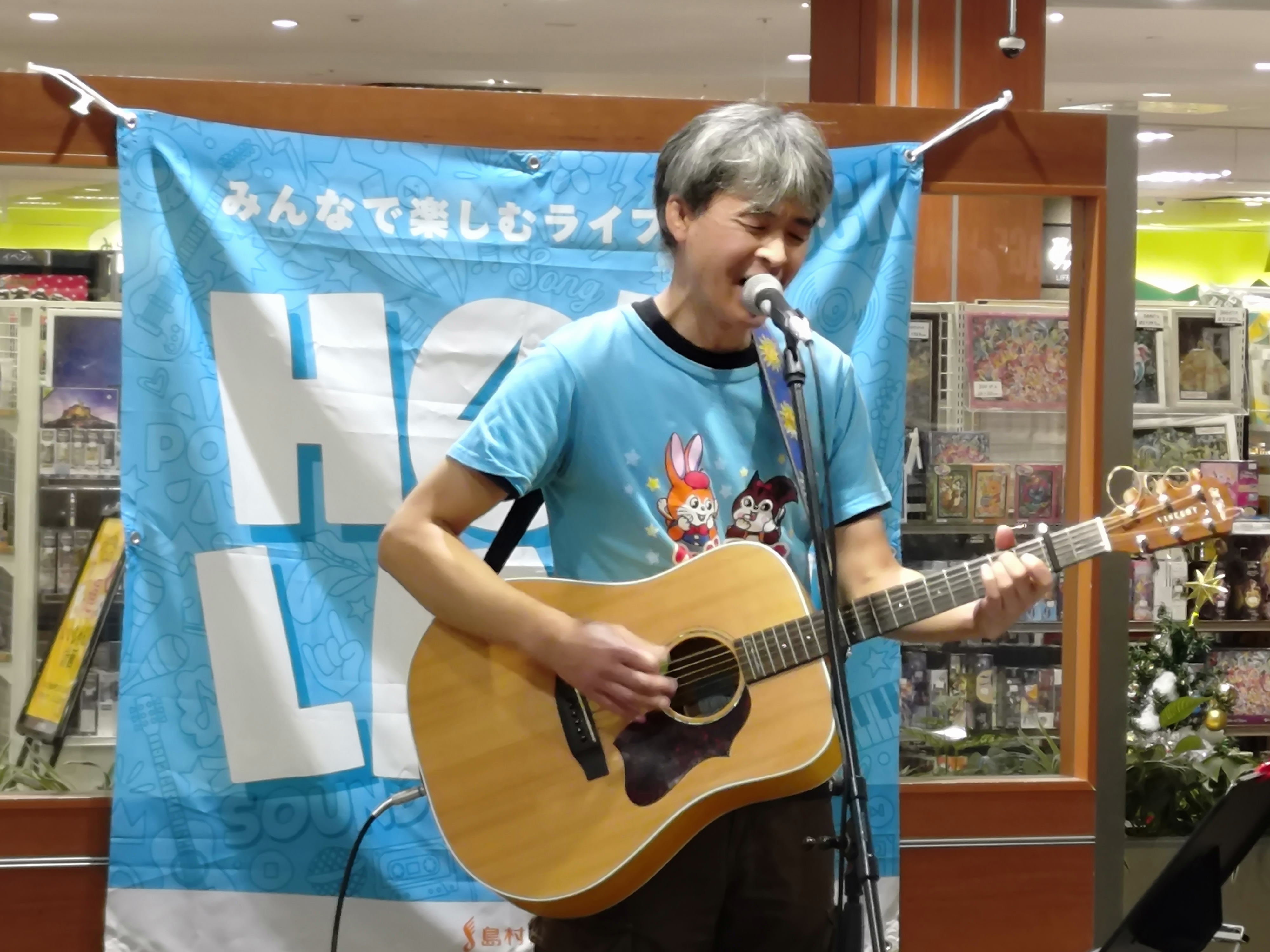 普段はバンド形式でもライブをされていますが、今回はアコースティックデュオとして出演です。ボーカルの掛け合いも織り交ぜながら、年齢を感じさせない熱くエネルギッシュなステージを披露、ライブ会場を盛り上げてくれました。