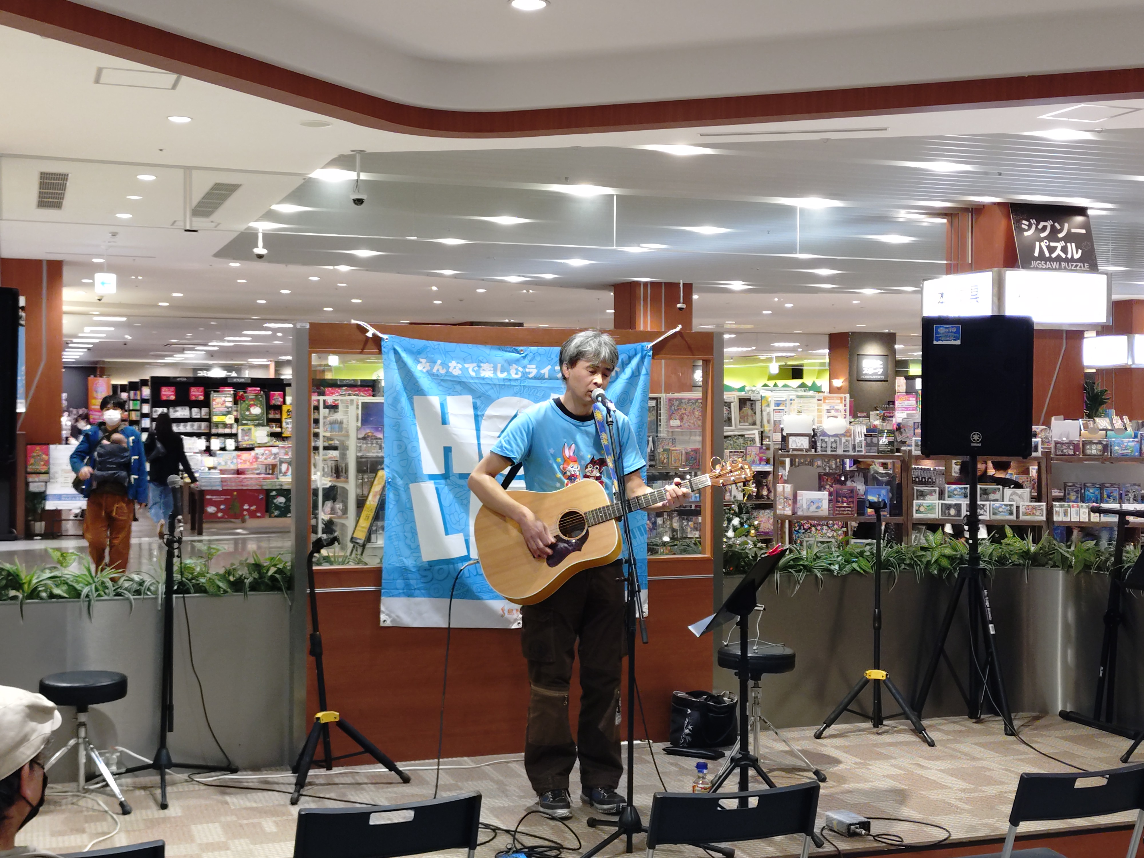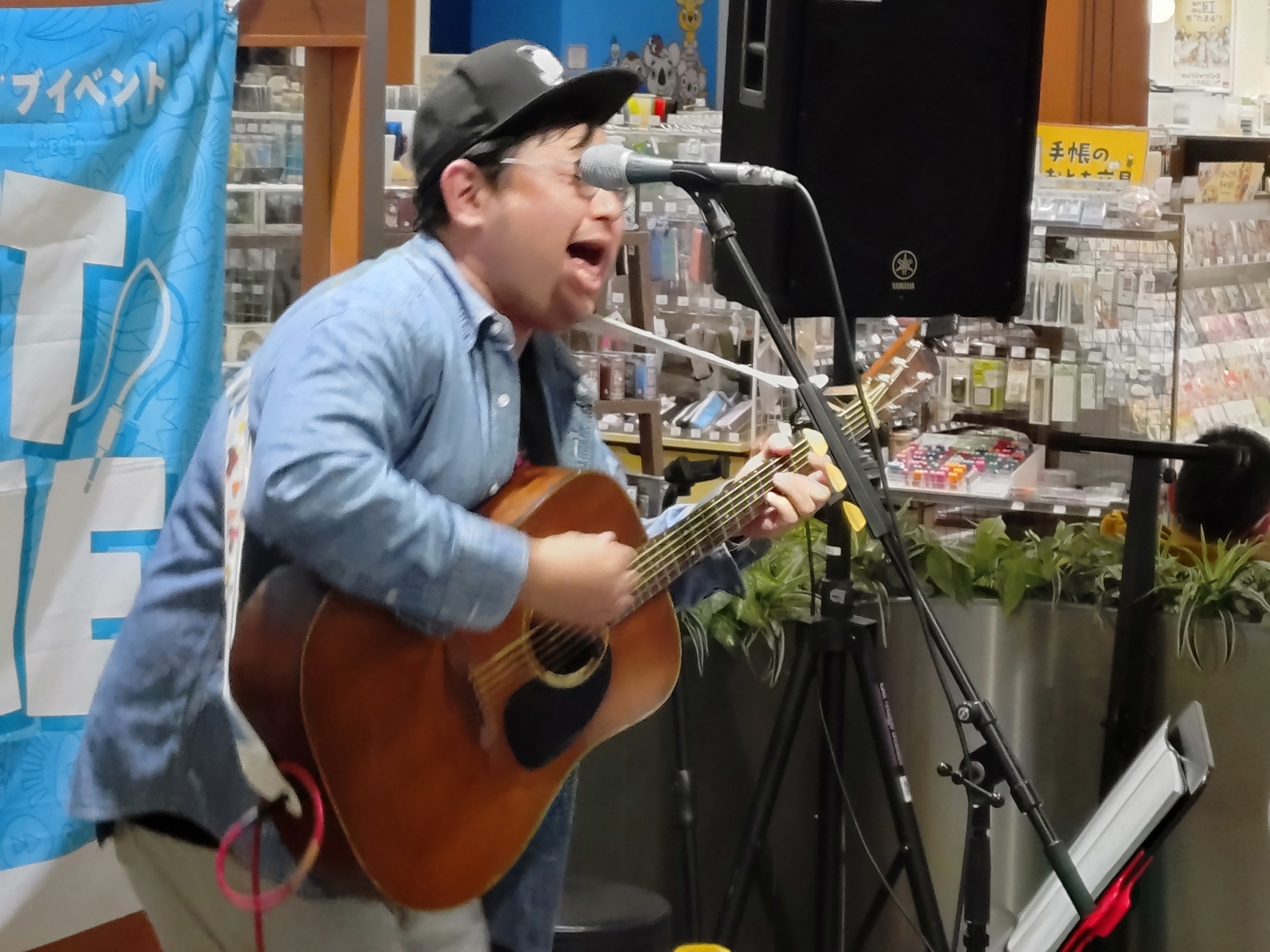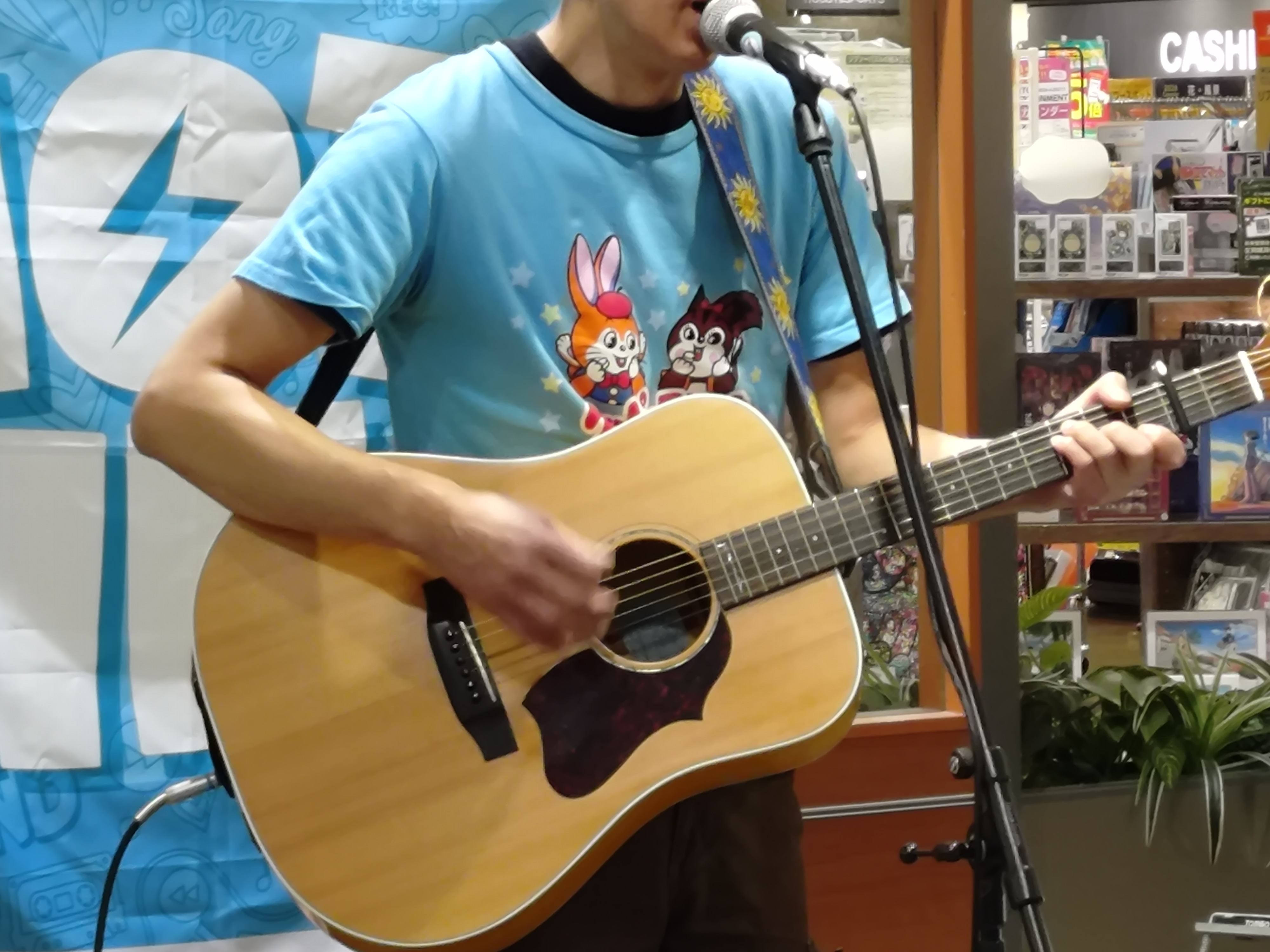 前回のスタジオライブ、前々回のこちらのレクチャースペースステージにも出場してくれていたキムケンsunが登場です。カバーとオリジナル曲を演奏されましたが、オリジナル曲の語りかけるような弾き語りが素敵でした。そしてT-シャツが素敵です。