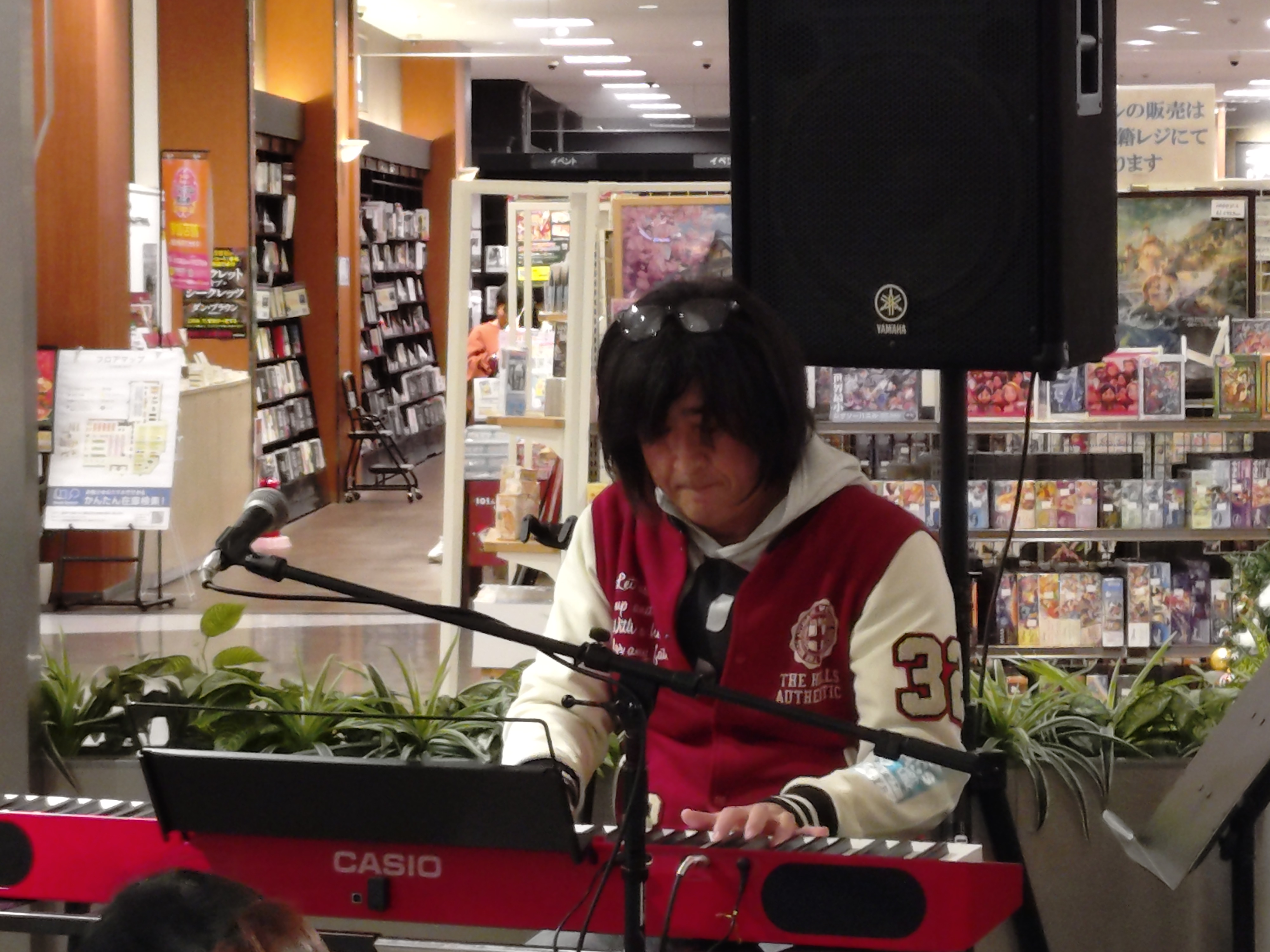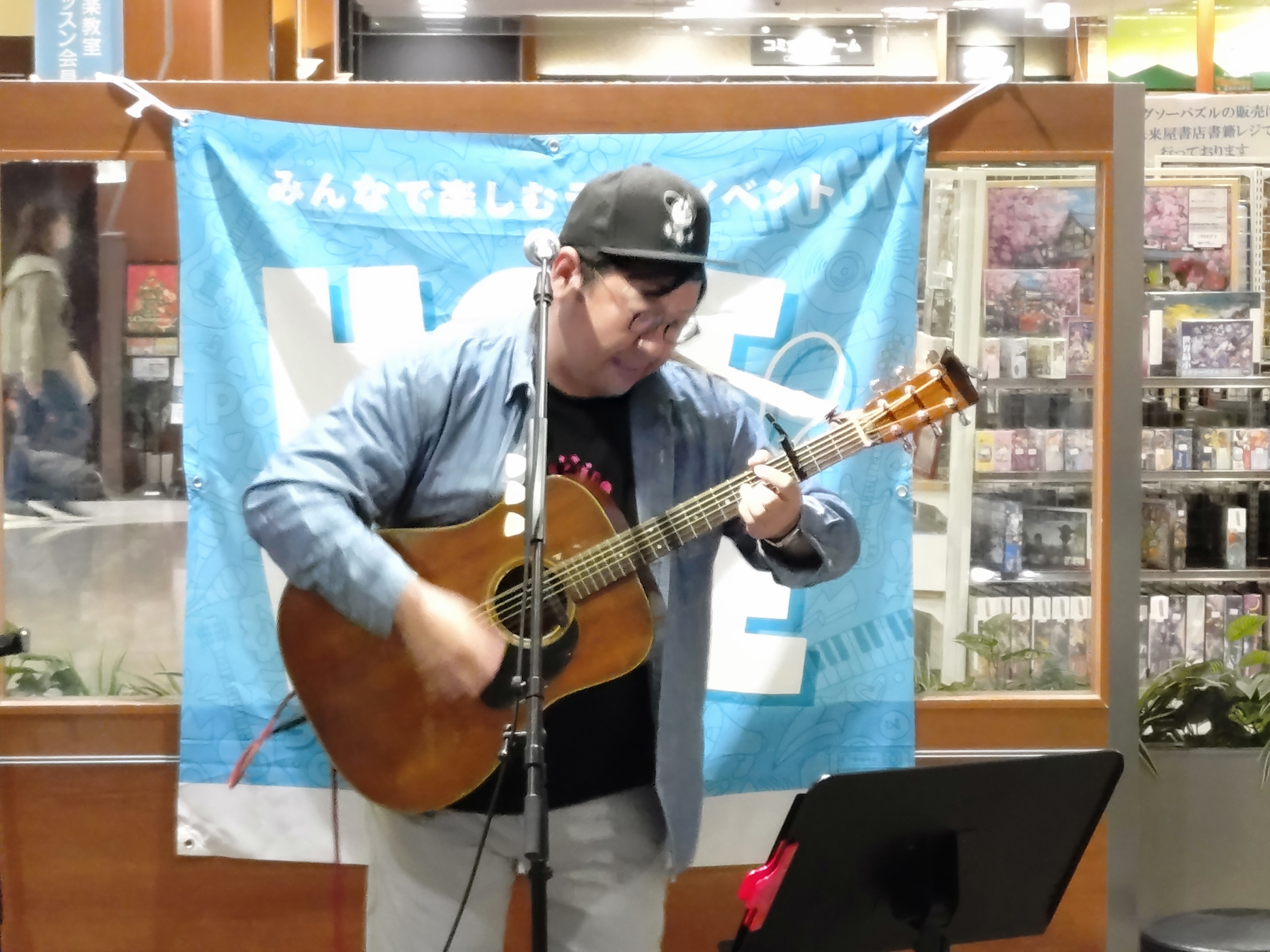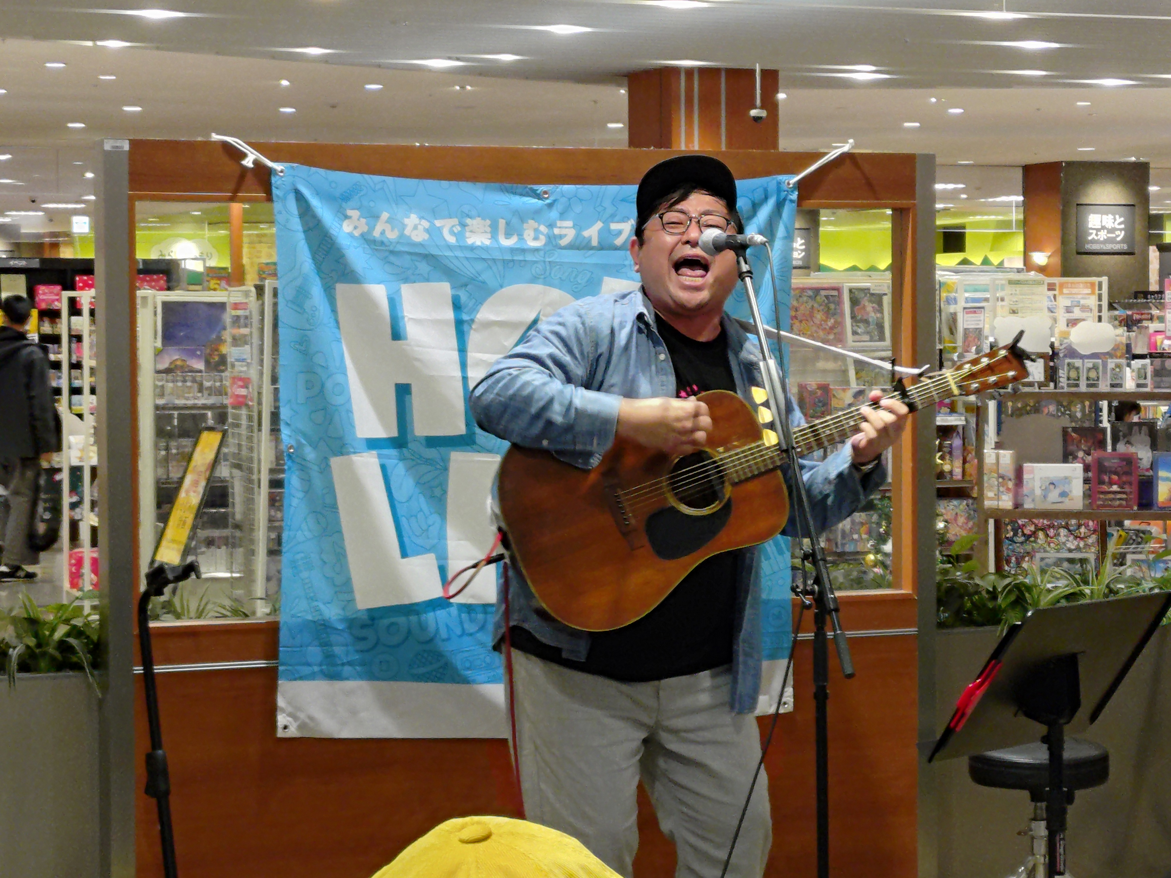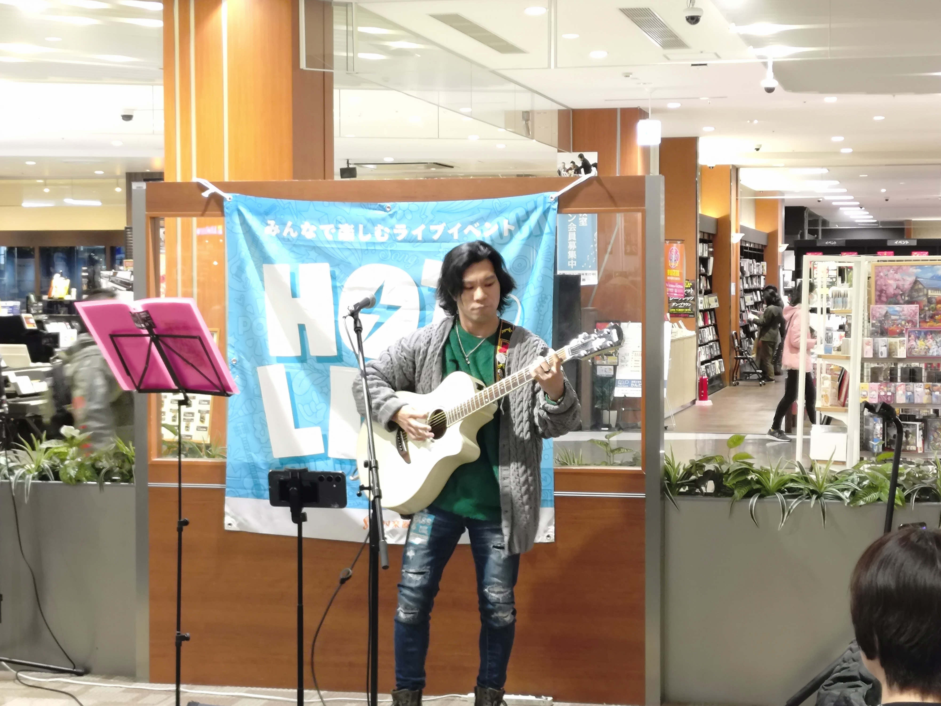 前回のスタジオライブ、前々回のこちらのレクチャースペースステージにも出場してくれていたキムケンsunが登場です。カバーとオリジナル曲を演奏されましたが、オリジナル曲の語りかけるような弾き語りが素敵でした。そしてT-シャツが素敵です。