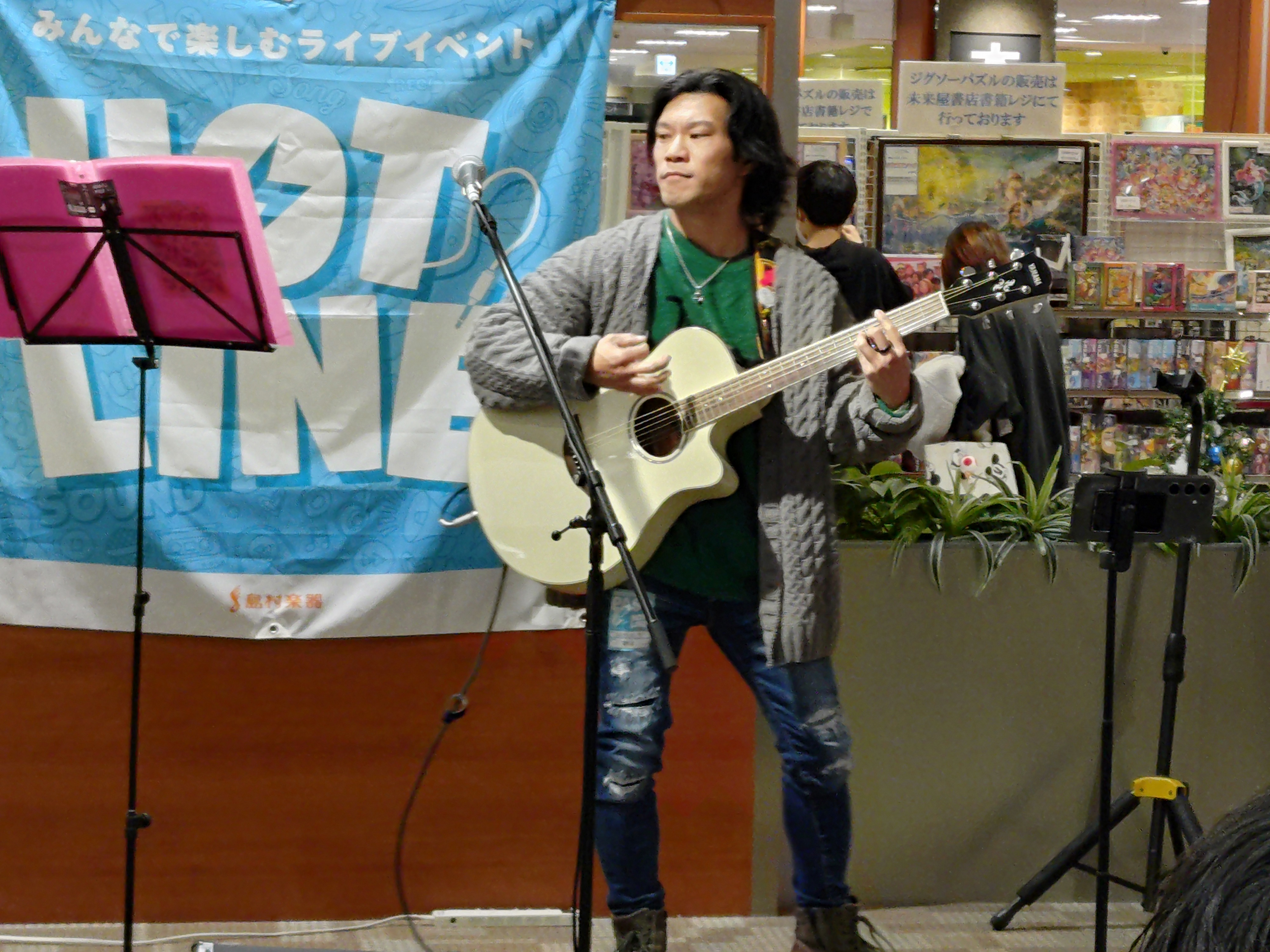 第三回目となるHOTLINEは店外のレクチャースペースでのアコースティックライブでした。早速ですが出演者をご紹介していきます。