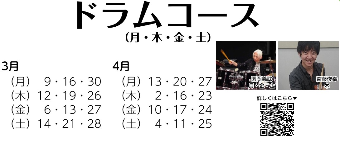※レッスン日程は予告なしに変更になる場合がございます。予めご了承ください。
