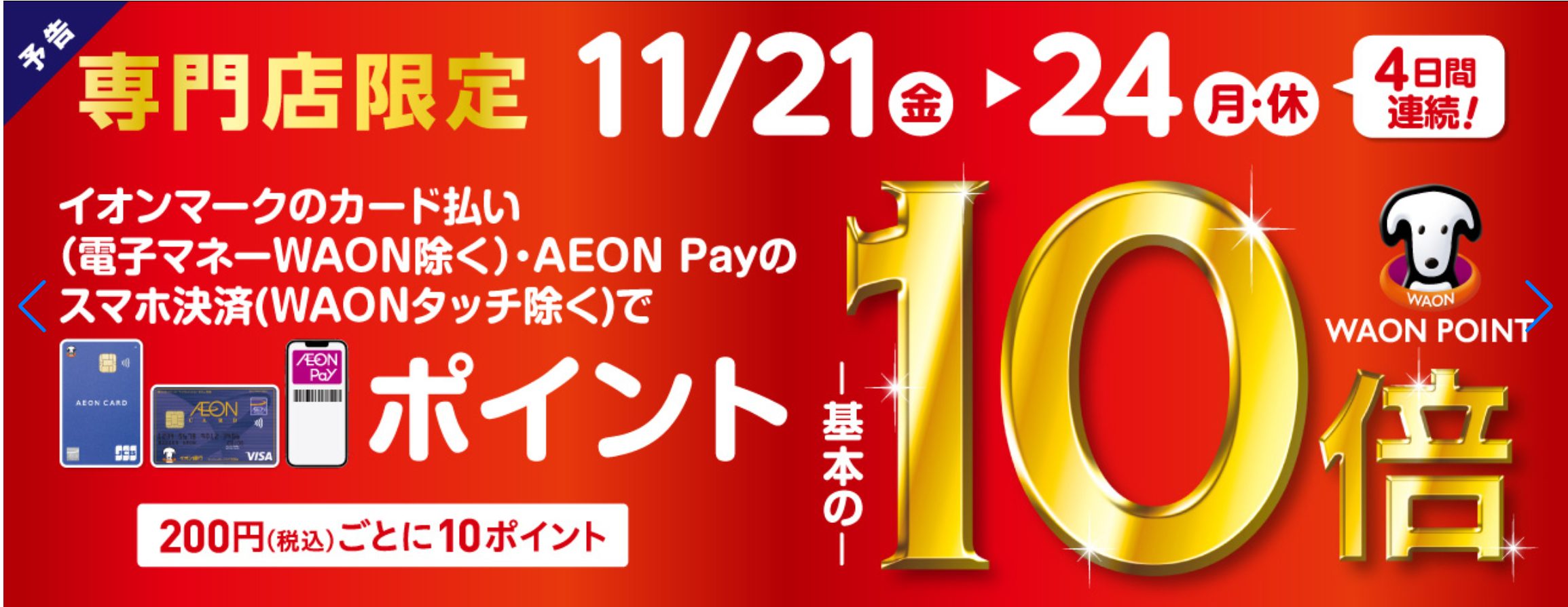 イオンカード払い WAONポイント10倍キャンペーン開催!