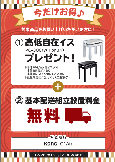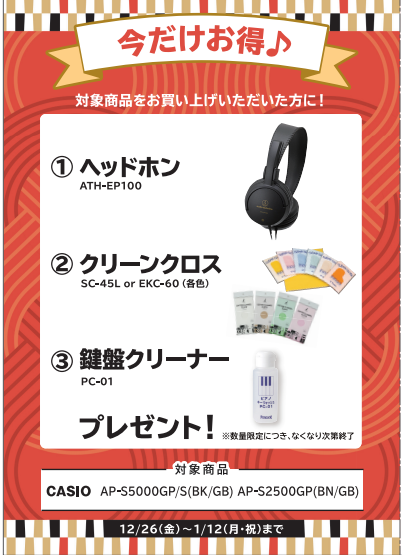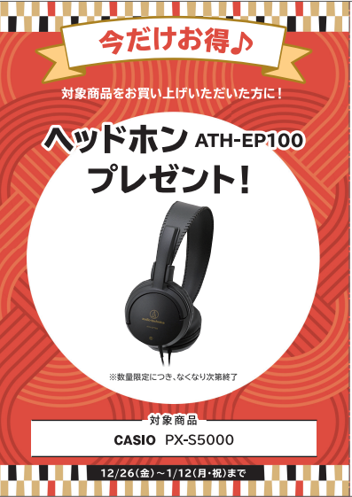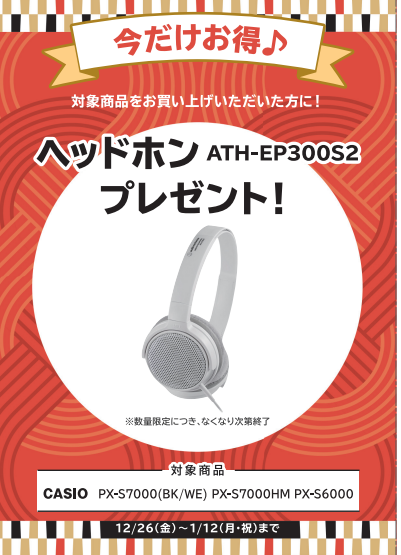 【CASIO電子ピアノ】年末年始えらべるPay プレゼントキャンペーン開催