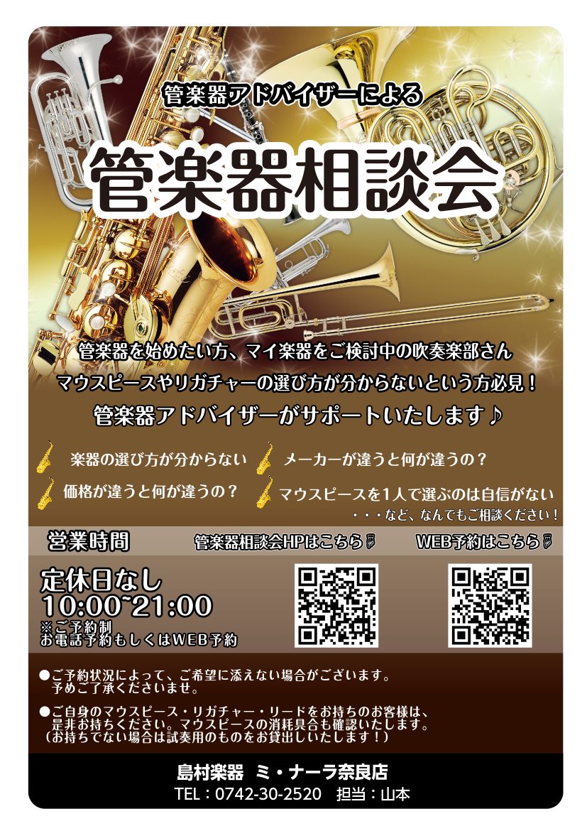 この機会をぜひご利用ください。管楽器相談会の詳細は⇒こちら!