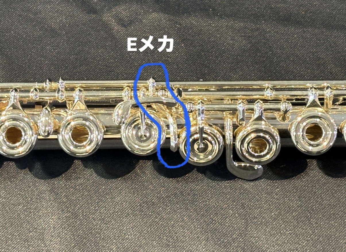 Eメカニズムは、フルートの構造上出しづらい第3オクターブの「ミ(E音)」を出しやすくするためのキイシステムです。